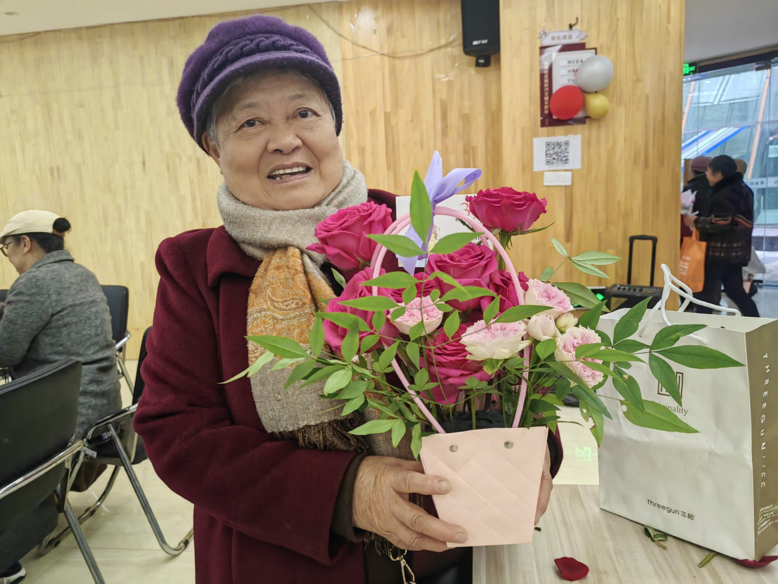 活动环节:插花。志愿者把插花材料分发给各位居民接下来,花艺老师现场讲解插花的基本技巧和花材的搭配方法,在插花技巧讲解中,穿插讲授各种花卉所蕴含的寓意和养护方法,大家一边听讲,一边选择花枝进行修剪和搭配,在馥郁花香中领会艺术之美,在插花劳作中寻找乐趣。每位参与者都沉浸在花的海洋中,品味着花的韵味,用作品传递女性的柔美和坚韧。在花艺师的指导下,居民们很快完成一份精美的插花作品互动交流与其他参与者分享插花心得,交流生活与艺术的感悟。