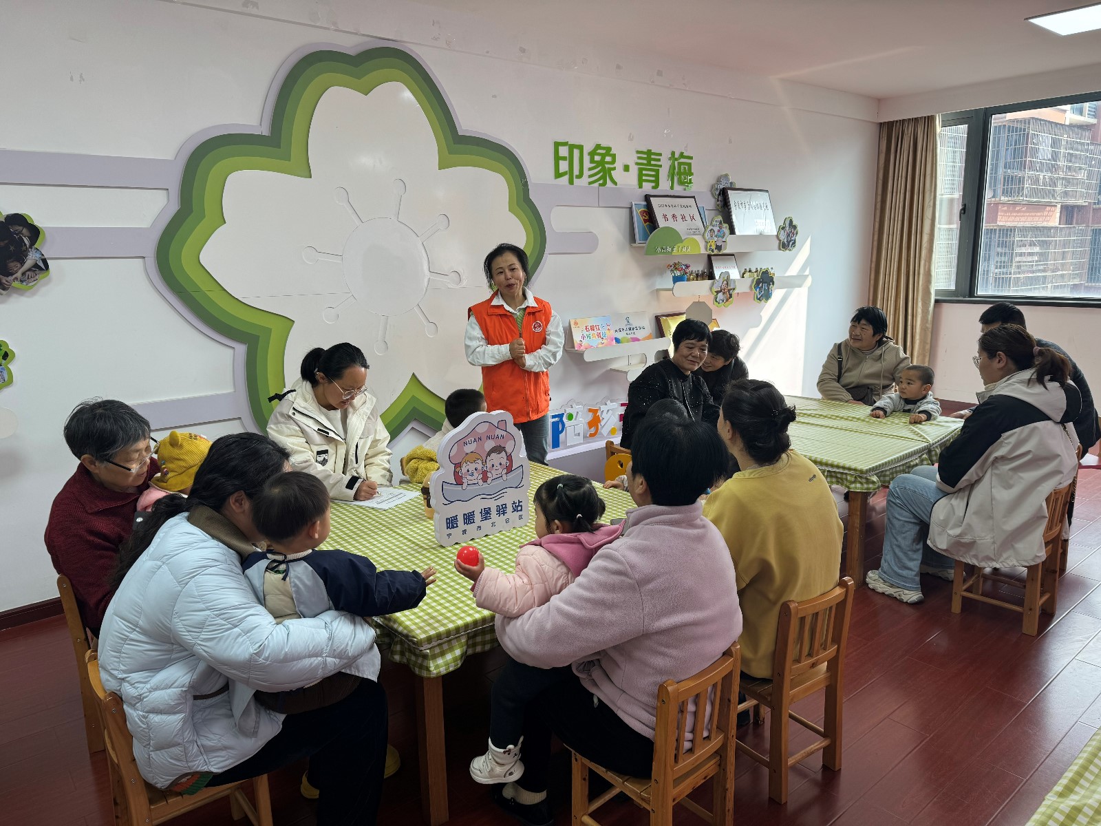 活动伊始,家庭养育员通过生动的卡通动画和互动问答,向家长和孩子们普及植树节的由来及意义。“树木是我们的好朋友,可以净化空气、保护地球!”在工作人员的引导下,孩子们用稚嫩的声音重复环保口号。随后,结合垃圾分类小游戏,家长带着孩子将印有不同垃圾图案的卡片投入对应的分类垃圾桶模型,让孩子们初步理解“可回收物”“厨余垃圾”等概念。