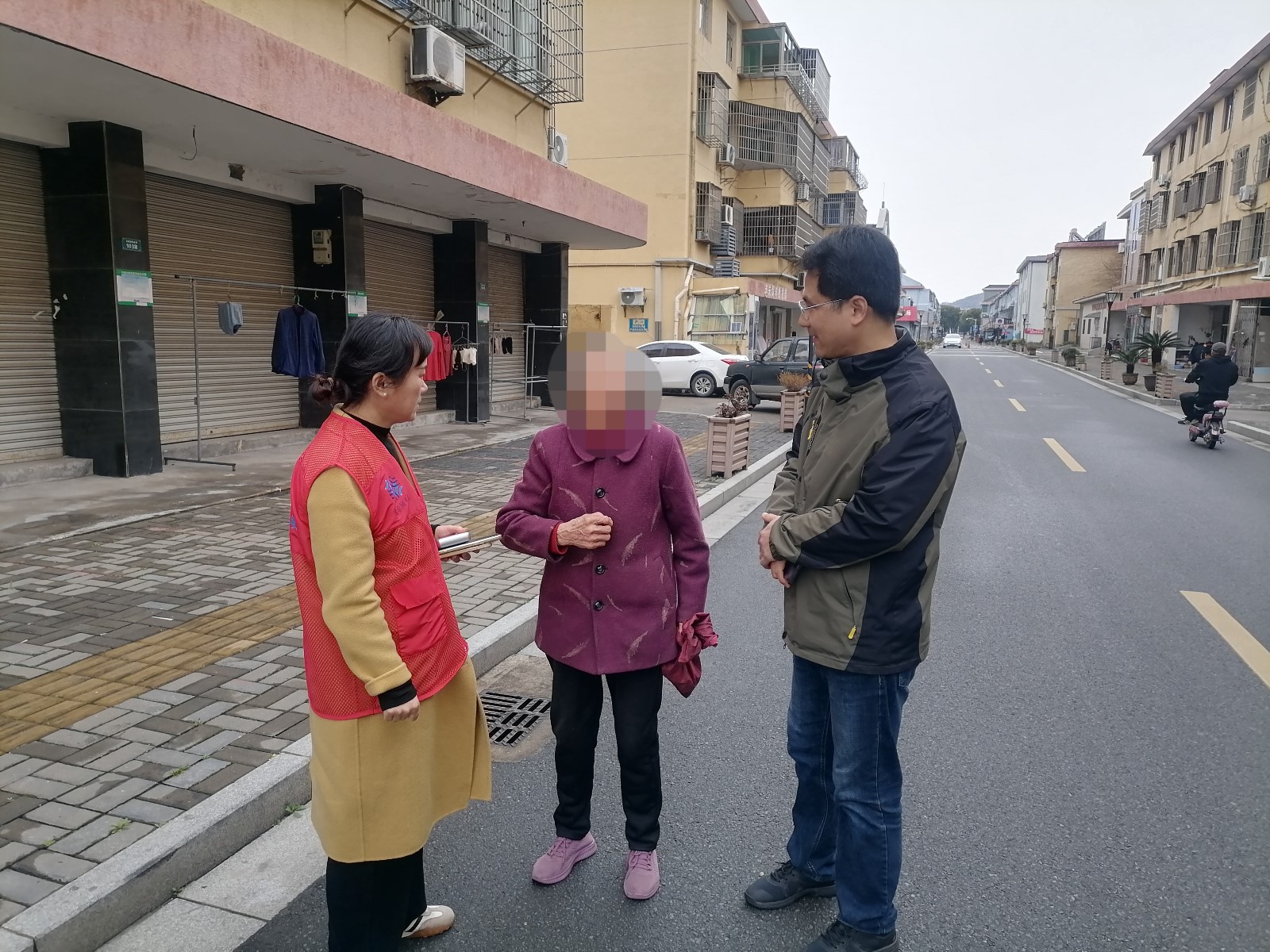 当天上午十点左右,天气湿冷,峰城社区网格员小周在日常巡查走访时,发现路边有个老人拎着布袋,步履蹒跚地在路边转圈圈,神情焦虑,略显疲惫。网格员立刻上前询问情况,得知老人外出后怎么都不记得自己家在哪里,已经转悠大半个小时,心急如焚。