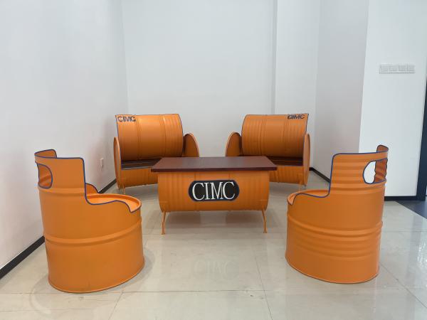 将废弃油漆桶切成半弧形,做成半包围的休闲椅,再切割一块边角料,涂上原木色油漆,作为茶几隔板。昨天,刚刚完成硬装的北仑区大碶街道玉山工业社区新址,迎来一份特别的乔迁贺礼——一套通体橙色的工业风定制家具。