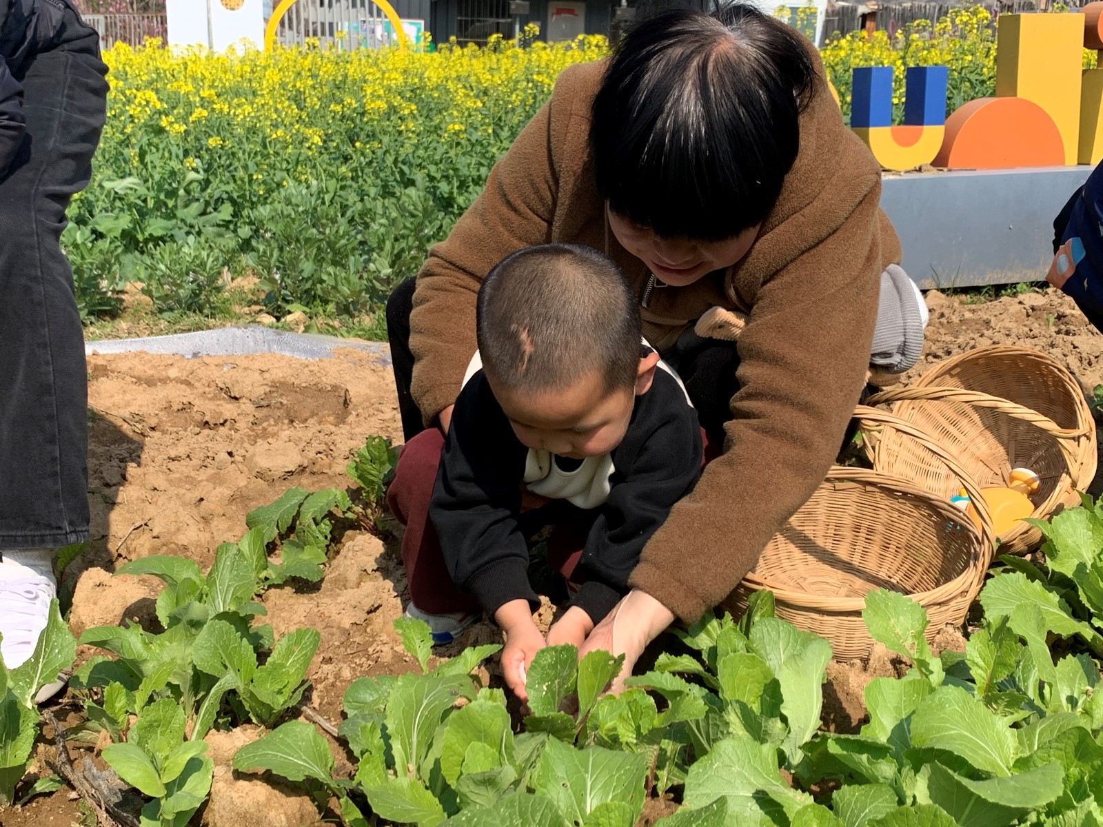 活动伊始,孩子们拉着妈妈的手,跟着农艺师走进绿意盎然的菜畦。蹲下身,捏住菜根,用尽全力向上拔起——一株株鲜嫩水灵的菜破土而出。“妈妈,我成功啦!这是我拔的第一株菜!”5岁的朵朵举着沾满泥土的小白菜兴奋喊道。不少家长感慨,这是孩子第一次下地挖菜近距离地感受到了泥土的味道