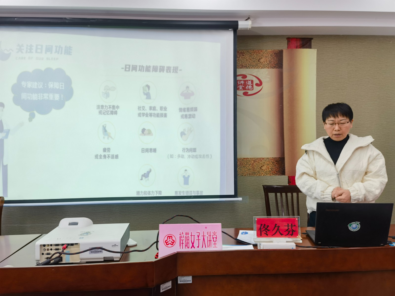 为了提高居民对睡眠重要性的认识,普及睡眠知识,帮助大家改善睡眠质量,思源社区妇联在世界睡眠日到来之际,邀请镇海区人民医院佟久芬主任,为社区居民开展一期“睡眠健康 优先之选”健康教育讲座,旨在通过科普讲座、互动体验等多种形式,让公众更加深入地了解睡眠的奥秘,掌握改善睡眠的有效方法,共同迈向健康的生活。