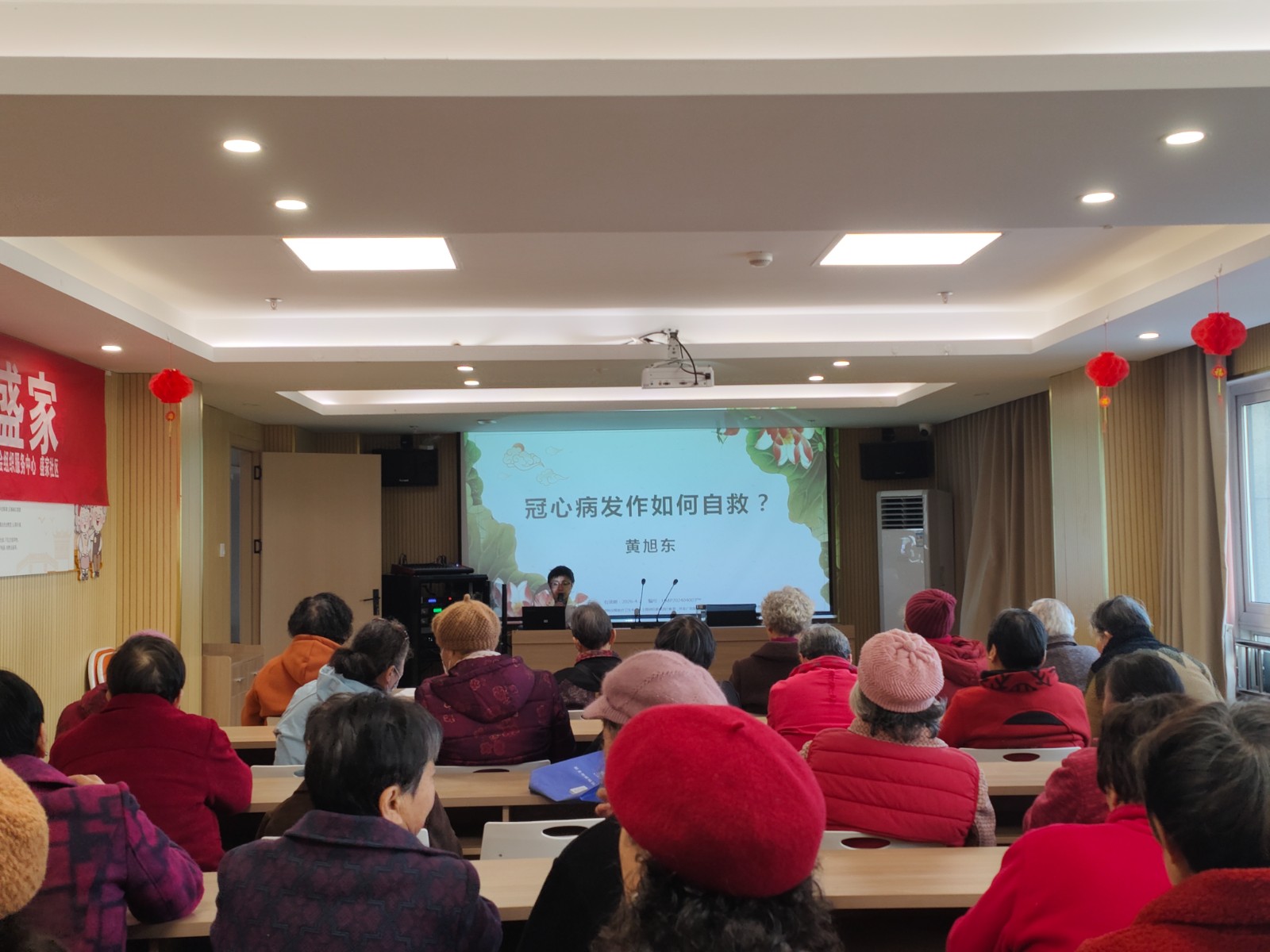 3月20日,盛家社区邀请黄医生开展一场针对冠心病患者发作如何自救讲座。座上,医生采用通俗易懂的语言为大家详细介绍了日常生活中居民们对冠心病的认识和治疗等相关知识,提示患病人群在日常生活中避免搬抬重物或过度劳累,适当运动,增强抵抗力,并保持心情愉悦等,在倡导健康的生活方式的同时,告诫居民一旦突发胸痛、胸闷症状,不能存在侥幸心理,要立即拨打120并保持电话畅通。现场气氛热烈,掌声不断。