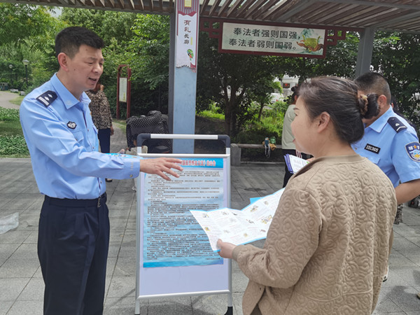 活动当日,社区工作人员与警务室民警早早来到宪法公园,悬挂宣传横幅,摆放宣传展板,营造出浓厚的反诈宣传氛围。居民们陆续来到现场后,工作人员和民警热情地向他们发放反诈宣传手册,并结合近期发生的典型案例,用通俗易懂的语言向居民详细讲解刷单返利、网络贷款、冒充公检法等常见诈骗手段的特点、作案方式以及防范方法。