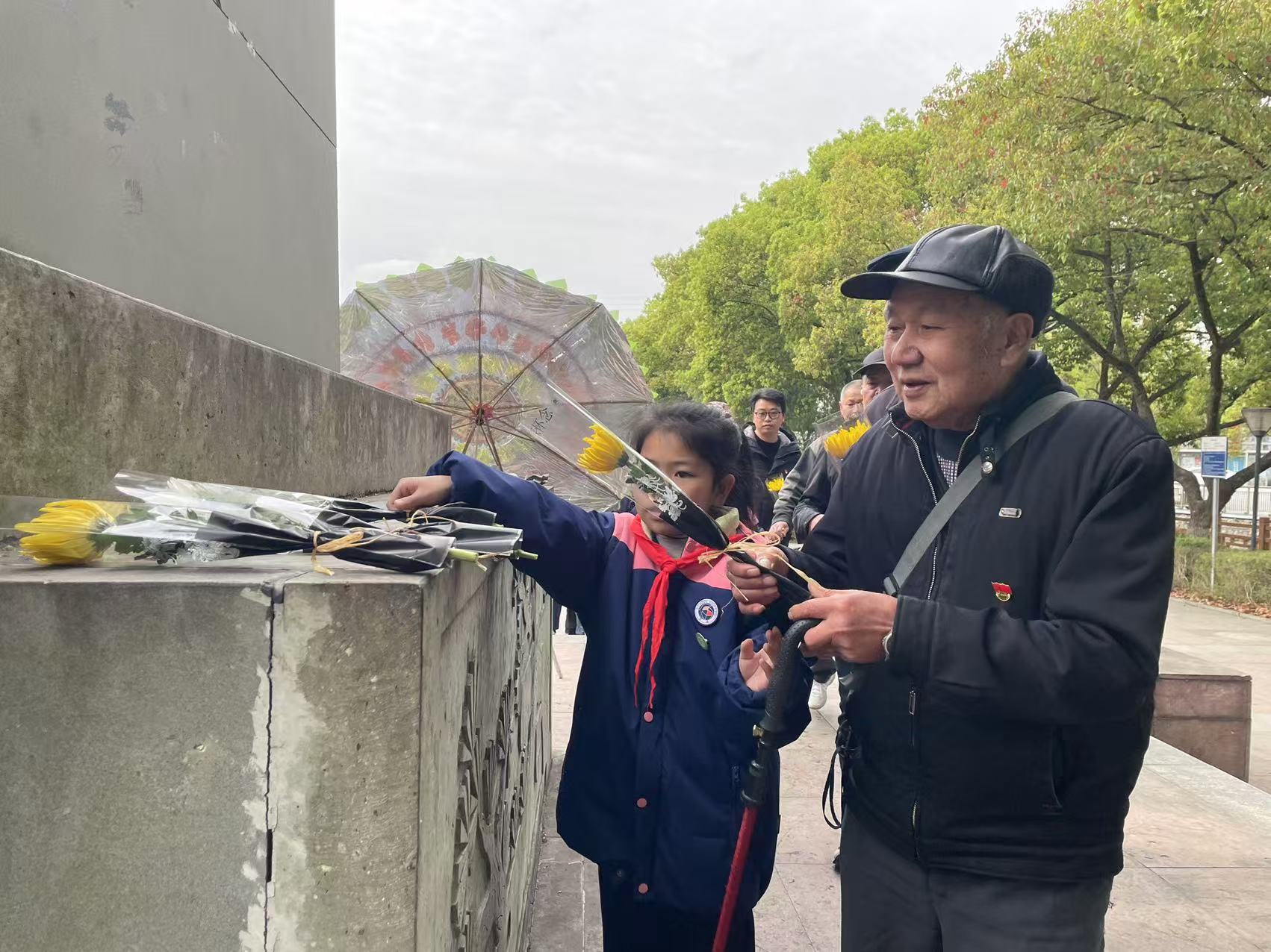 社区党员代表向革命烈士献上花圈,大家在烈士纪念碑前集体默哀三分钟。社区党员们重温入党誓词,每位党员带领一名学生代表,在纪念碑前敬献鲜花,表达对革命先烈的缅怀之情。随后,大家共同聆听发生在庄桥革命根据地的先烈事迹,铭记历史、崇敬英雄,增强社会责任感和历史使命感。