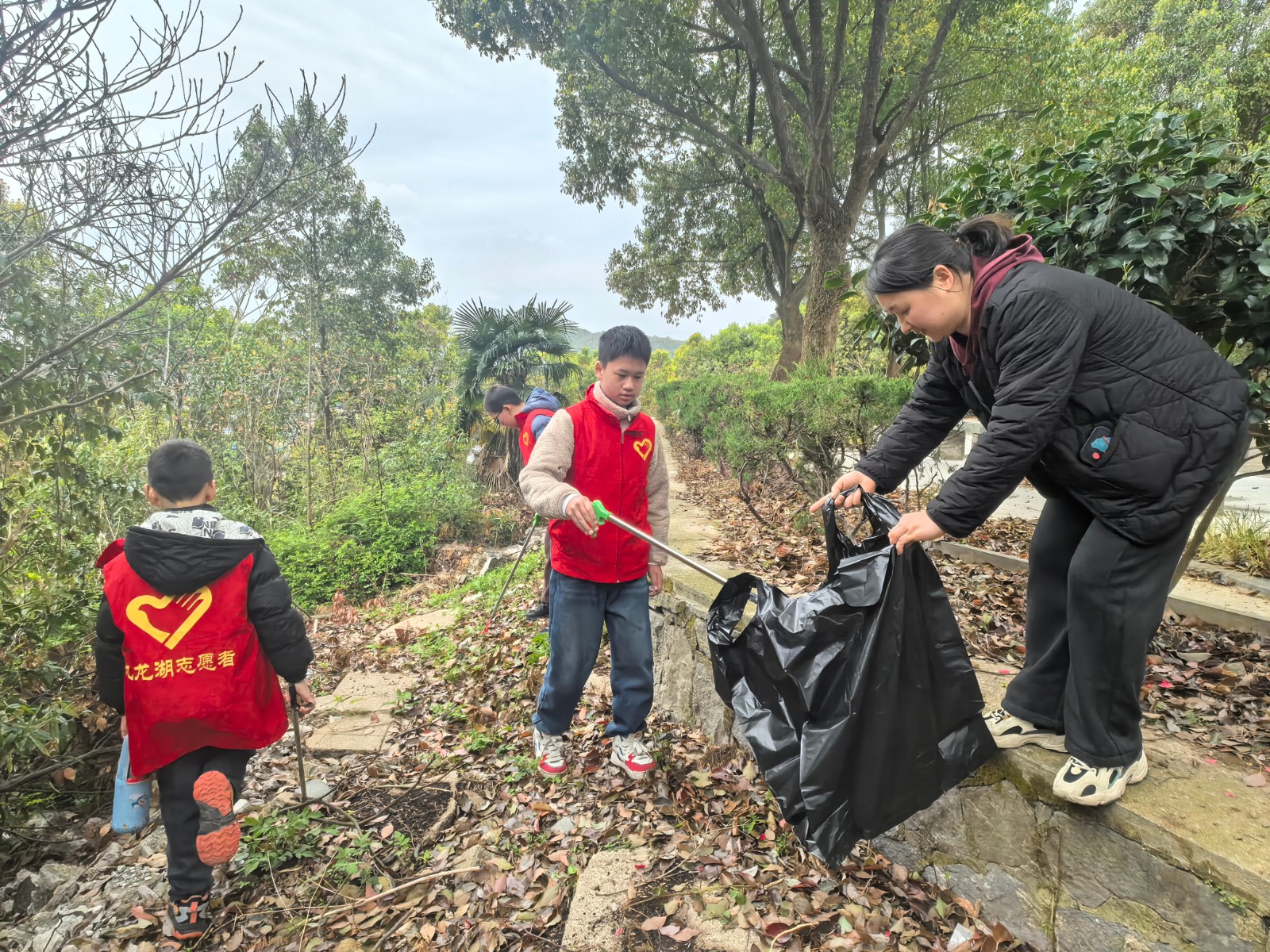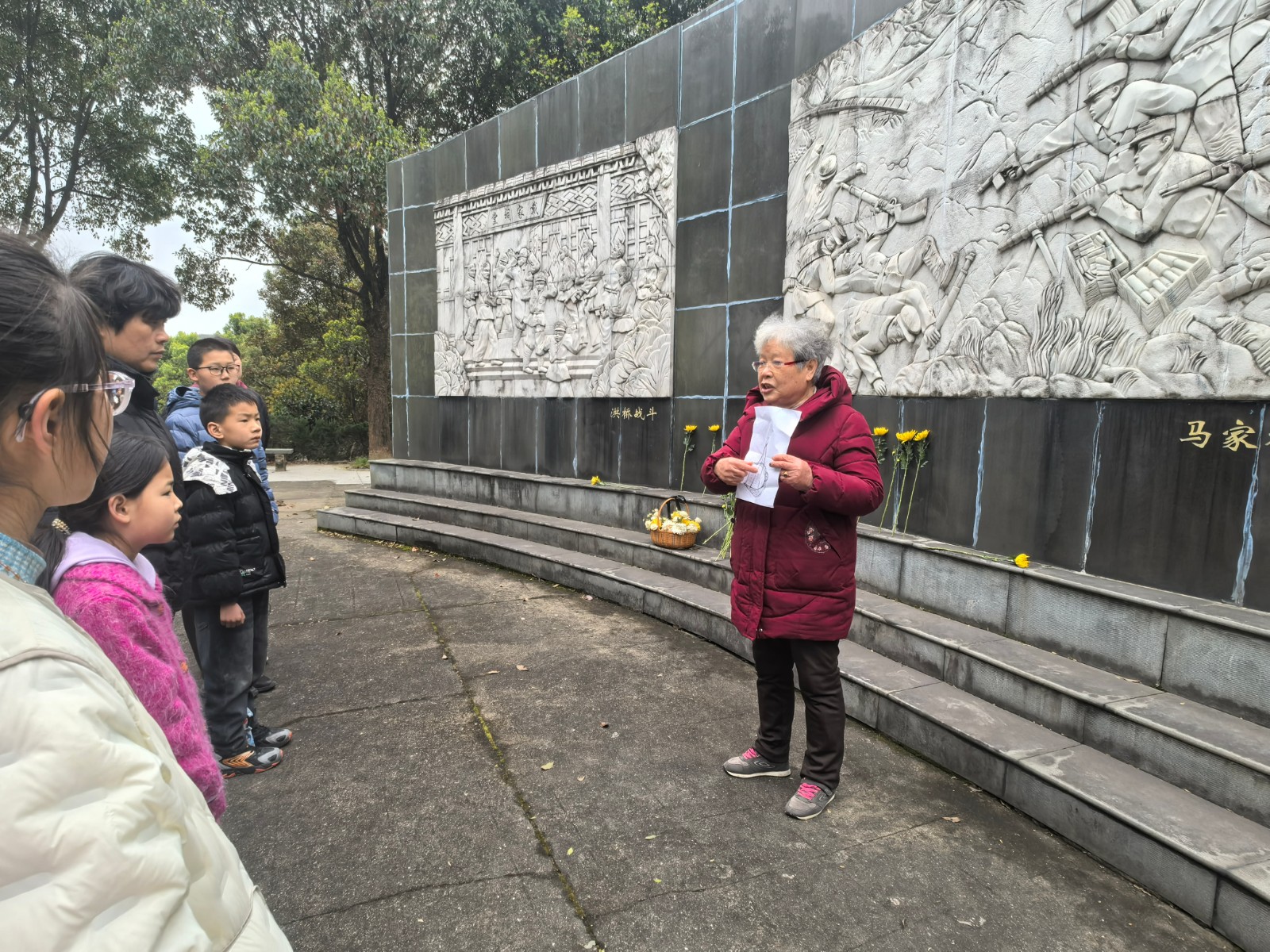 活动开始,全体人员肃立默哀三分钟。接着孩子们和家长手持鲜花,依次走向纪念碑敬献。随后,九龙湖镇红色宣讲员顾余春老师动情地向大家讲述了发生在九龙湖的红色革命故事。孩子们用心聆听,用稚嫩的心灵感受历史的厚重。活动最后,家长和孩子们穿上志愿者衣服,拿起工具,用心清理思源亭步道和绿化带里的杂物,用实际行动守护先烈们为之奋斗的土地。