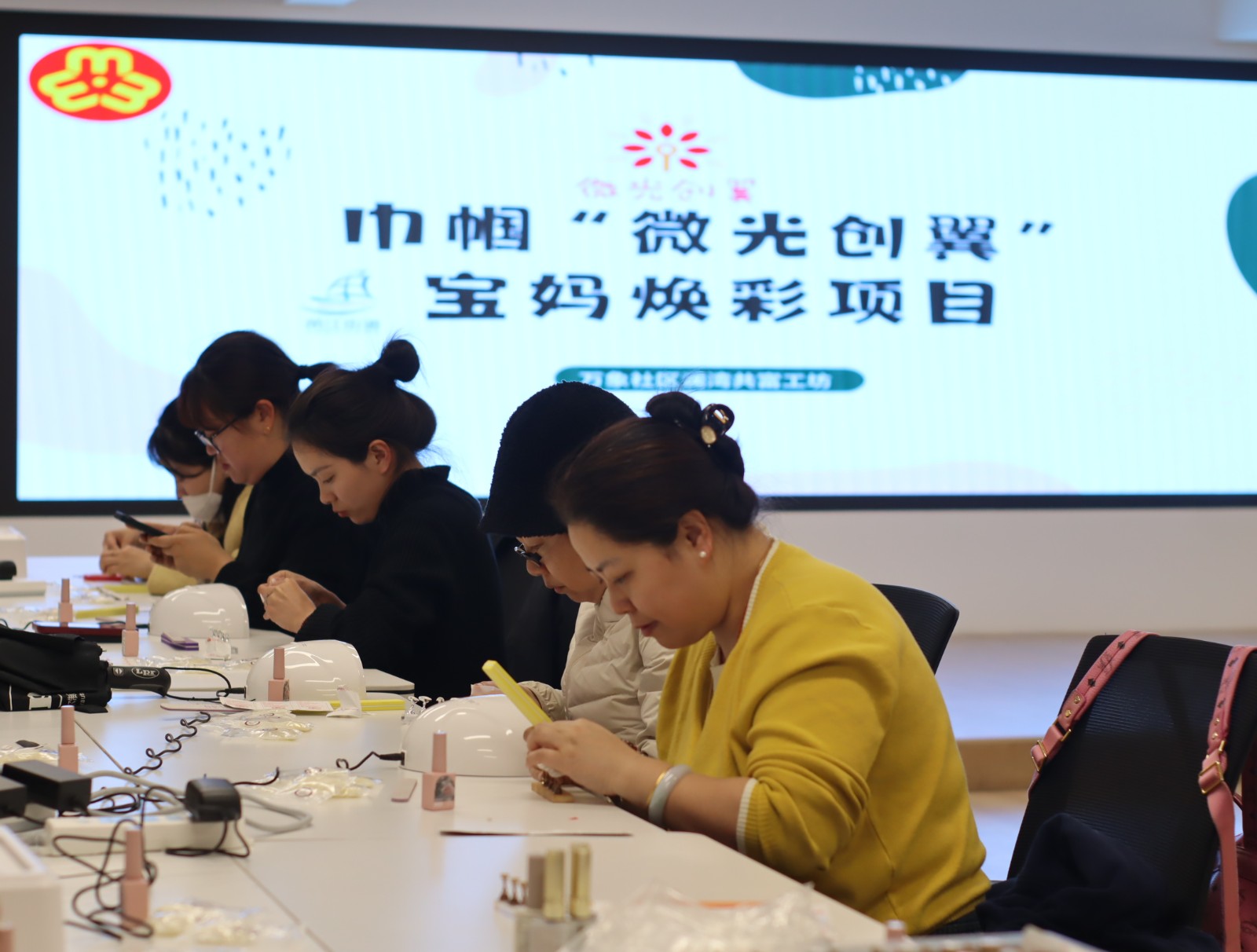 为进一步完善女性创就业服务,助力女性发展,根据片区特点和居民需求,区妇联联合甬江街道妇联,以湾头片区为试点,推出“微光”创翼行动——宝妈焕彩项目。3月28日晚上,第一场焕彩项目活动在万象社区澜湾共富工坊正式启动。