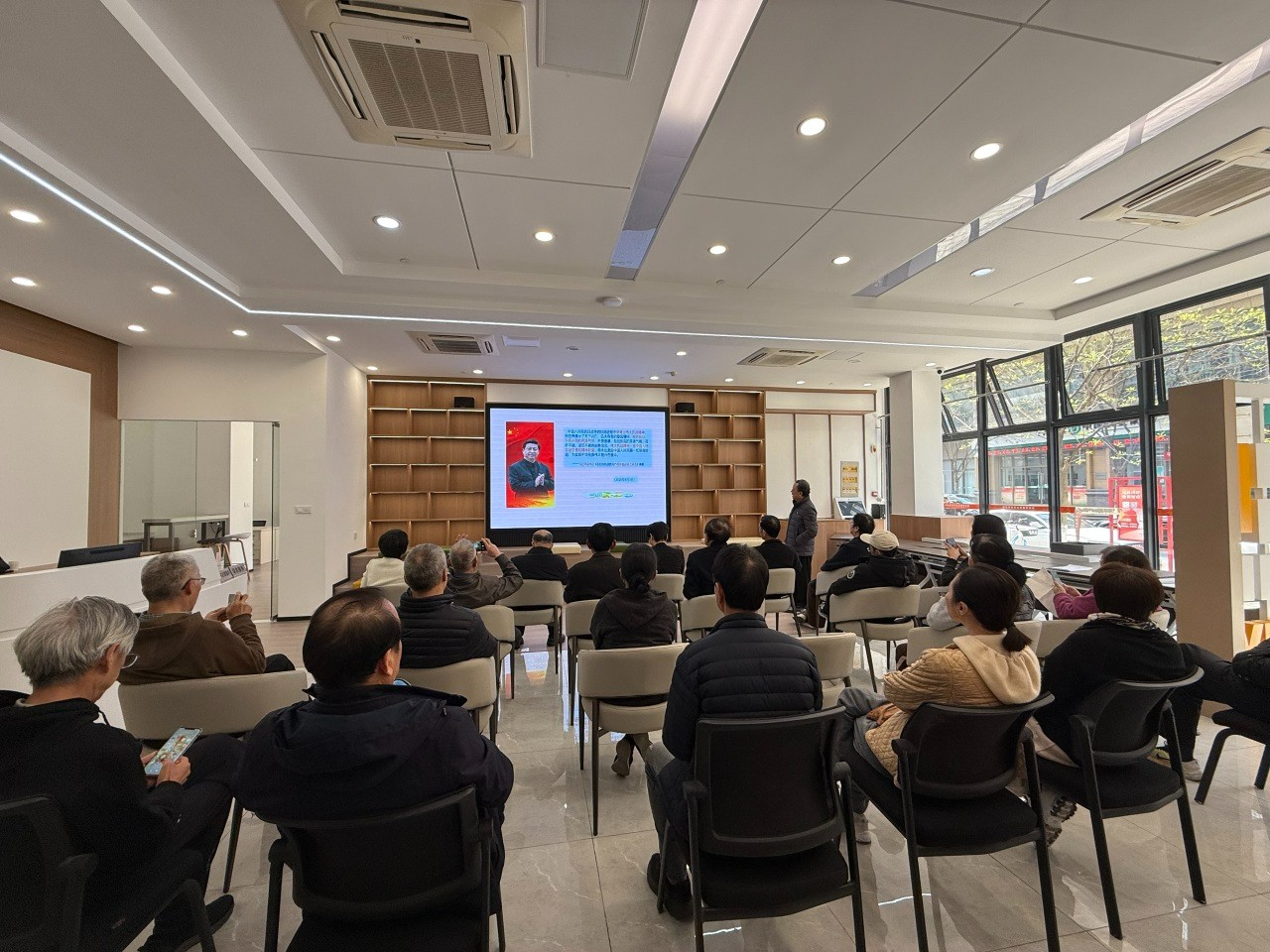 活动现场,社区邀请宁波市新四军历史研究会原副会长兼秘书长叶小湖老师,为党员、退役军人和居民朋友们带来专题党课《浙东红色土地上的抗战英烈》,以鲜活故事再现新四军浴血奋战的峥嵘岁月。