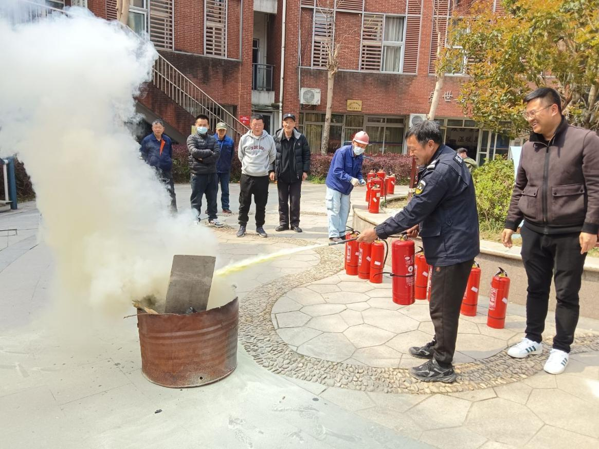 理论学习后,进入实操环节。在专业人员的指导下,物业工作人员积极参与初期火灾扑救演练。大家手持灭火器,按照 一提、二拔、三握、四压的步骤,成功扑灭模拟火源,切实掌握了灭火器的正确使用方法。