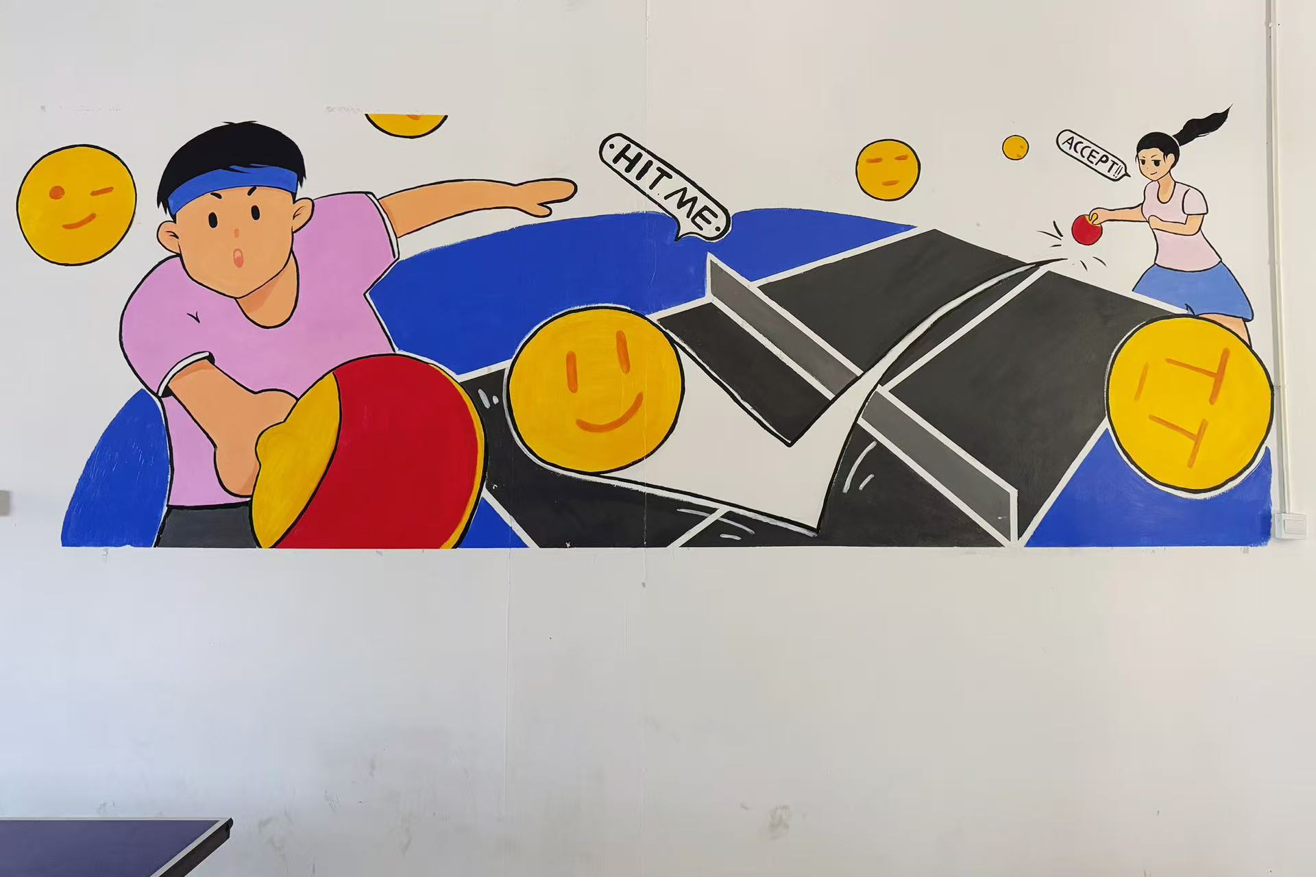 近日,镇定社区海天云桥小区的“国球进社区”点位因一面创意墙绘成为社区焦点,栩栩如生的运动员对决场景,为公共空间注入了艺术活力与运动激情。