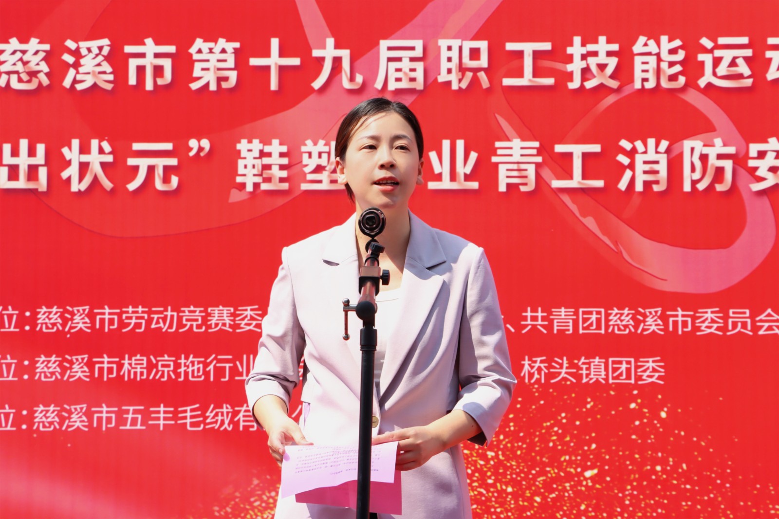 桥头镇党委副书记、镇长罗琳芳,慈溪市经信局总工程师、党委委员胡达龙,慈溪市应急管理局副局长、党委委员邹军辉,慈溪市总工会党组成员、副主席陈铁迪,共青团慈溪市委员会副书记柴铮巍,桥头镇党委副书记茅立锋,桥头镇党委委员徐文浩,桥头镇副镇长周金忠,慈溪市消防救援局火调技术办负责人张鑫,慈溪市棉凉拖行业协会会长陈江出席活动。全市26家鞋塑企业52名青年职工代表参与比赛。