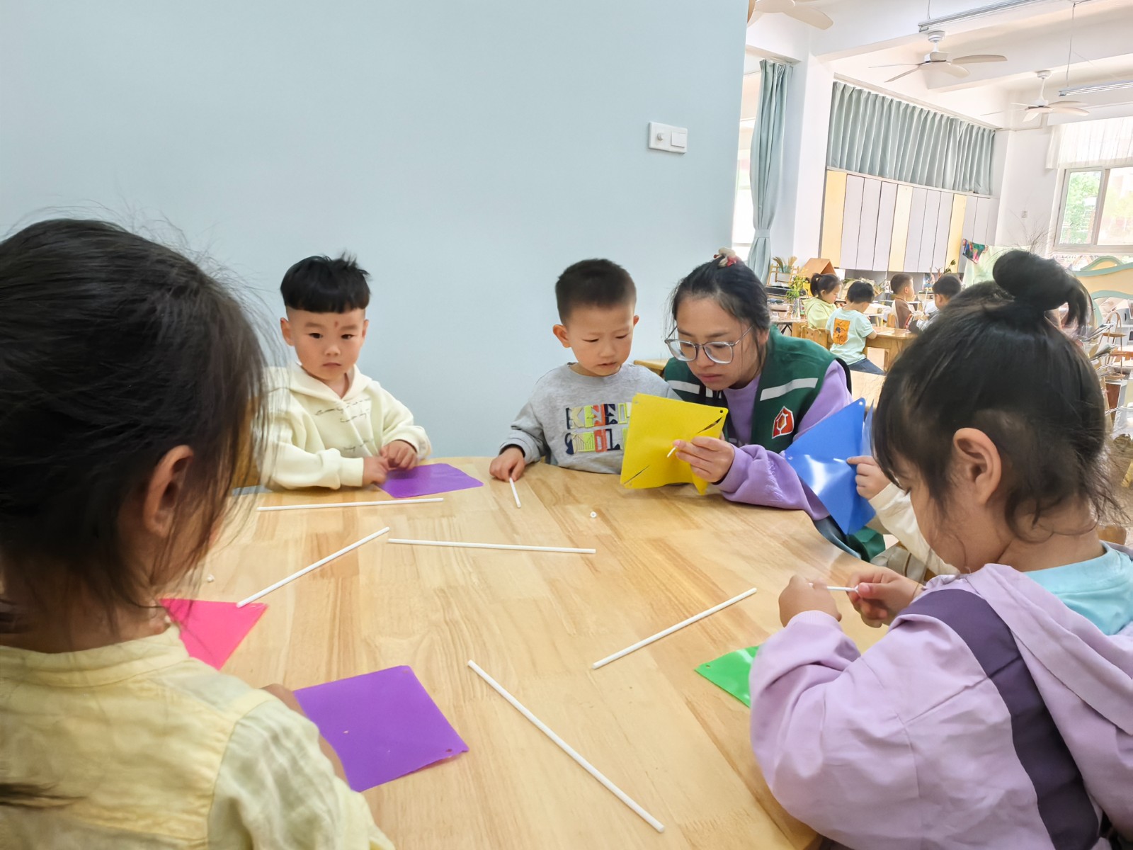 4月14日,十七房村联合澥浦幼儿园开展了一场别开生面的“风车转转转”手工制作体验活动。