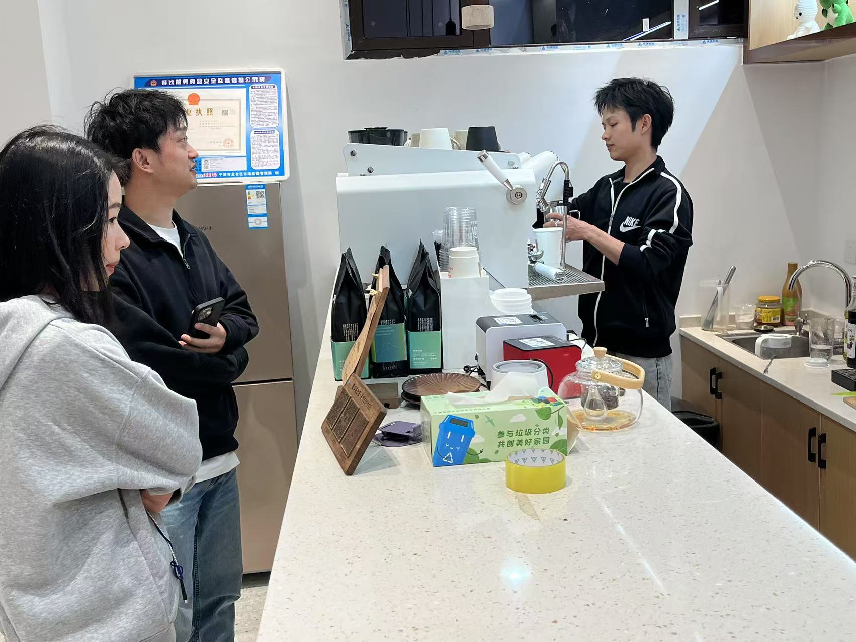 在大厅的一隅,几位大爷大妈围坐一起,品着不冷咖啡店香醇的咖啡,尝着美味的面包,热切地讨论着社区的新变化。从小区绿植的精心养护到社区文娱活动的丰富多彩,他们的话语中充满了对社区的热爱与期待。散步经过的居民也被这份热闹所吸引,纷纷进来坐坐,环顾着不冷咖啡店的菜单,点上一杯咖啡,享受着悠闲的时光。他们环顾着社区的周围布局与建设,感受着党群服务中心的每一处细微变化。