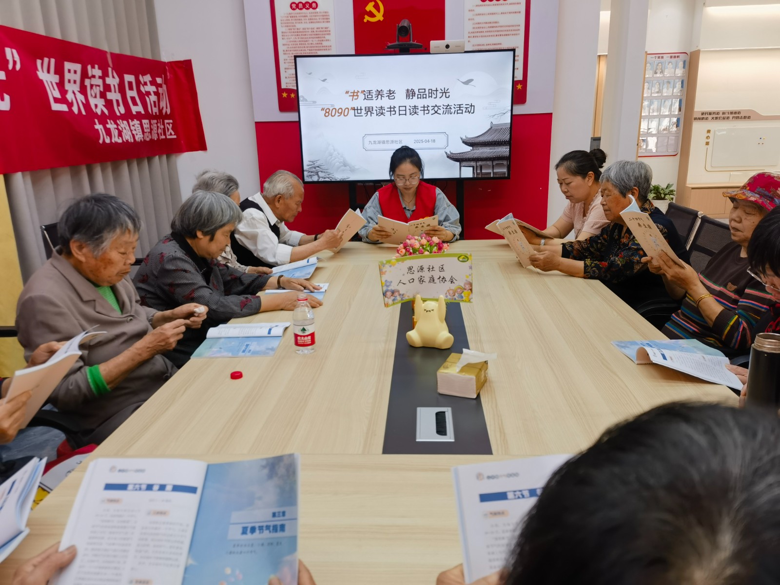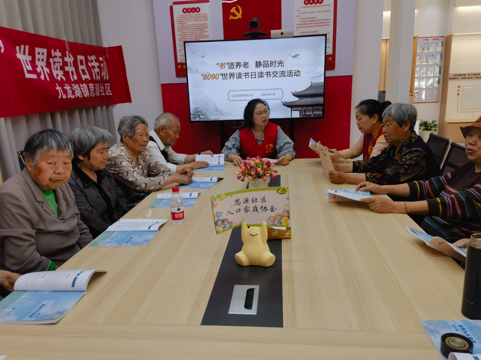 读书活动不仅能够丰富老年人的精神世界,还能通过阅读和讨论缓解孤独感,促进心理健康,提高生活质量。同时,老年人通过读书活动可以分享自己的人生经验和智慧,成为年轻一代了解历史、传承文化的重要桥梁。世界读书日来临之际,思源社区妇联组织辖区内年均80+的爷爷奶奶们,和80、90后的年轻人,围坐一起,开展“书”适养老 静品时光——“8090”世界读书日读书交流活动,通过书本,对婚姻家庭观、伟人诗词对如今的生活影响、养生知识等作交流分享。