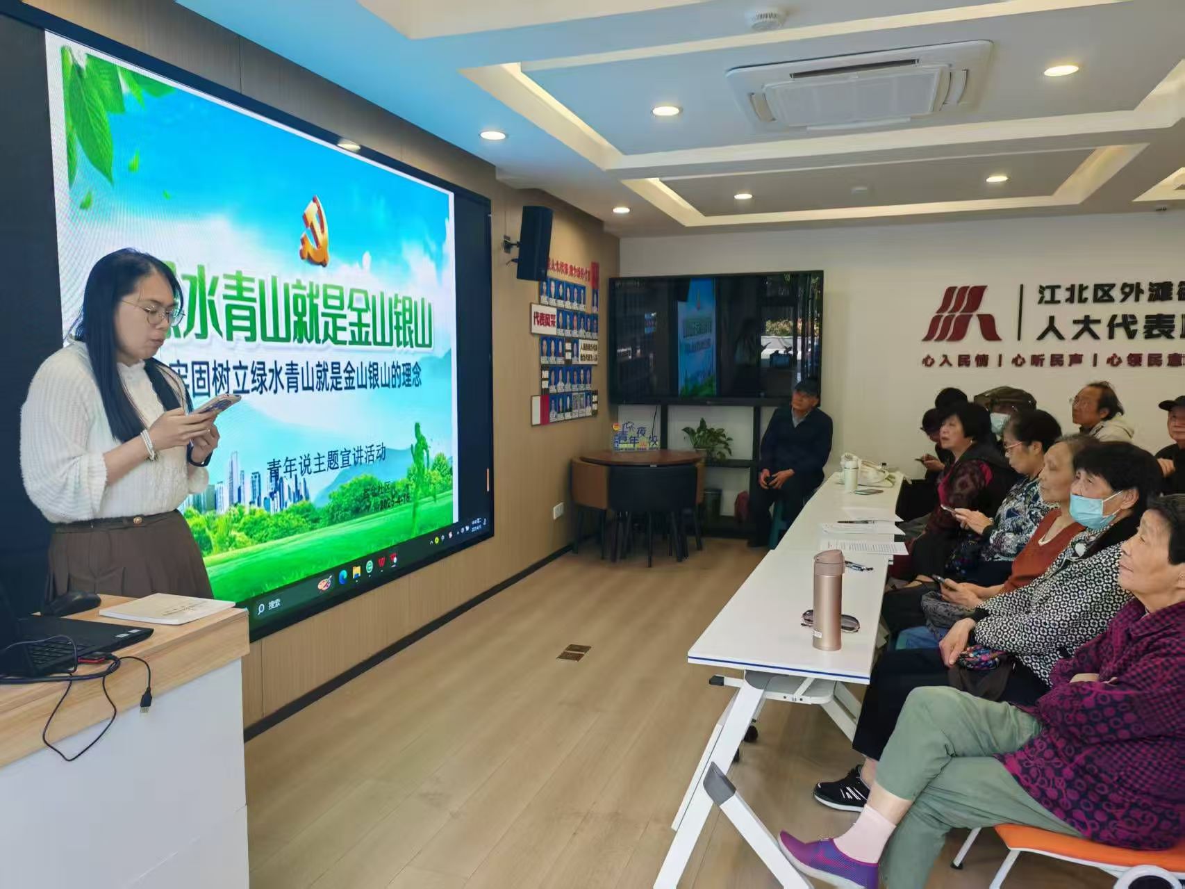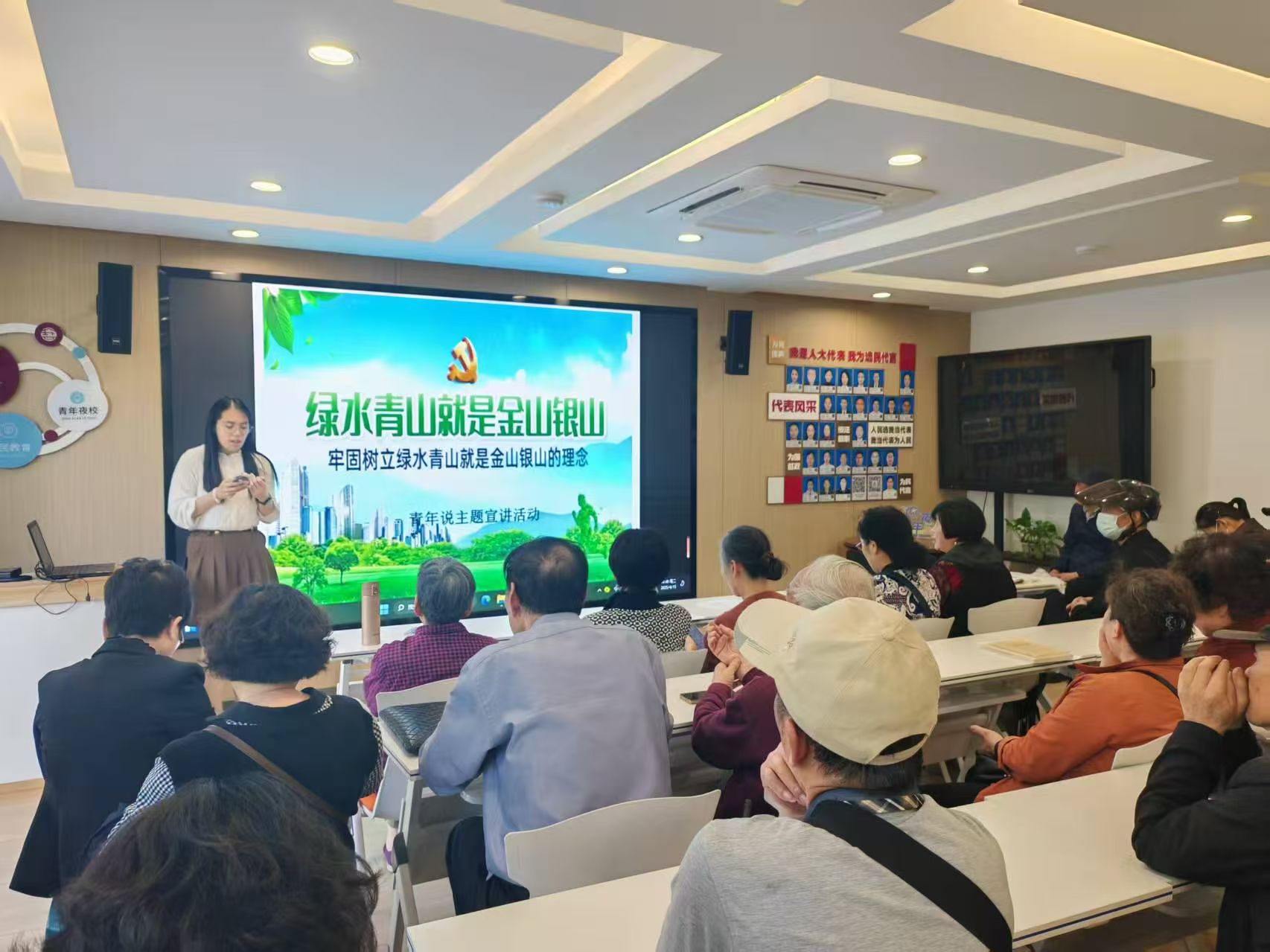 为深入学习宣传贯彻习近平生态文明思想,引导全社会牢固树立和践行绿水青山就是金山银山的理念,进一步推动辖区居民形成绿色低碳环保的生产方式和生活方式,2025年4月15日,盐仓社区新时代文明实践站以低碳志愿者队伍成立仪式暨低碳绿色知识培训班为契机,开展“绿水青山就是金山银山”青年说主题宣讲活动。