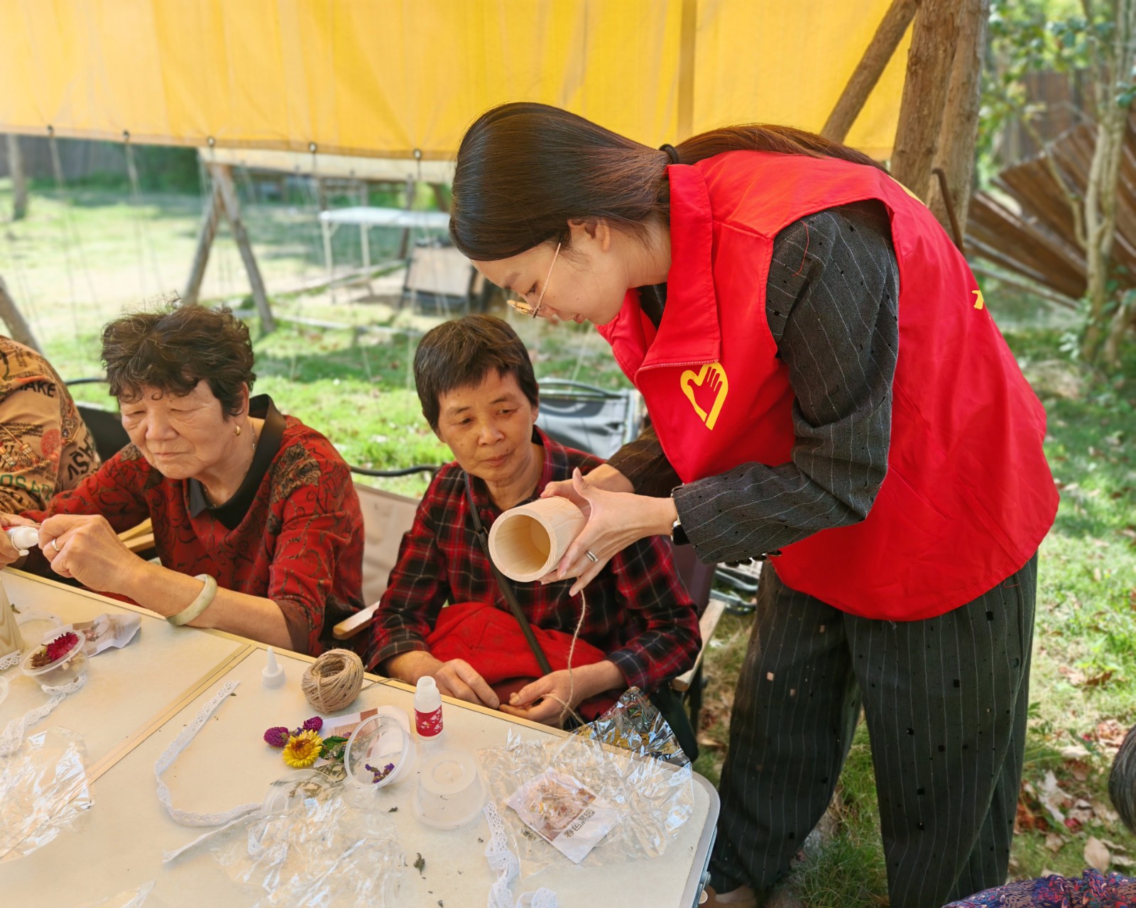 随后,开始做木头干花笔筒,将创意与手工完美融合。在志愿者的指导下,村民们发挥想象力,利用木头、干花等材料,精心制作属于自己的笔筒。他们细心地拼接、装饰,每一个步骤都倾注了心血。当一个个精美的木头干花笔筒呈现在眼前时,村民们的成就感油然而生。这些笔筒不仅是实用的文具,更是村民们智慧和创造力的结晶,为生活增添了一份艺术之美。