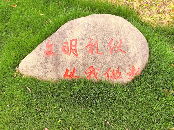 活动现场,学生们早早准备好颜料、画笔,构思着心中的文明标语:“讲文明树新风”、“文明礼仪从我做起”、“文明养犬守公约”……大家挥笔勾勒,鲜艳的字体与生动的配色让石头瞬间“会说话”。一块块承载着文明理念的石头被摆放在社区公园、主路两旁、游步道,成为随处可见的“文明小课堂”。