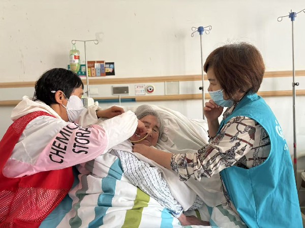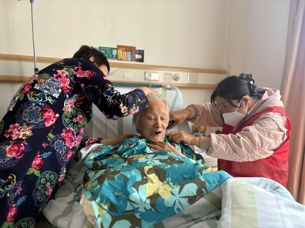活动现场,志愿者们手持剪刀、梳子,根据老人们的喜好精心修剪发型。对于行动不便的老人,志愿者们主动提供上门服务,在病床旁耐心细致地操作,动作轻柔缓慢,尽显人文关怀。在为老人理发的过程中,志愿者们还不忘向一旁观摩学习的护工传授技巧。“给老年人理发,动作一定要轻缓,避免让老人感到不适。” 志愿者一边熟练地梳理老人的白发,一边讲解:“遇到发质硬、白发多的情况,要用梳子充分梳顺,剪刀倾斜 45 度,从发梢逐步向上修剪,这样既能保证发型自然,又不会扯到头发。” 护工们认真聆听,不时用手机拍摄记录,并就细节问题与志愿者深入交流。