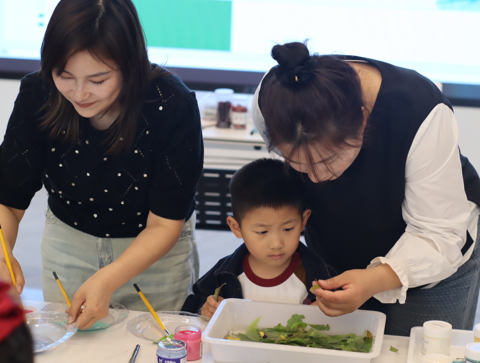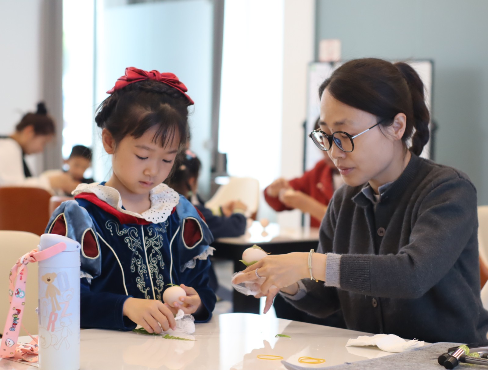 “小朋友们要认真听哦,我先给大家讲一下什么是植物拓染哦,等我讲完以后,小朋友们可以来我这里领取鸡蛋哦!2025年4月26日上午,,在江北区甬江街道湾头片党群服务中心来自万象社区的20余名小朋友在社区“小象妈妈”的带领下,一起走进拓染的世界,亲手创作独一无二属于自己的花草作品,在实践中感受传统艺术的魅力,用双手留住大自然的图案和颜色。这是甬江街道万象社区依托美+儿童美育小象妈妈”服务品牌开展的首场特色活动把春天敲敲留下来”植物拓染。
