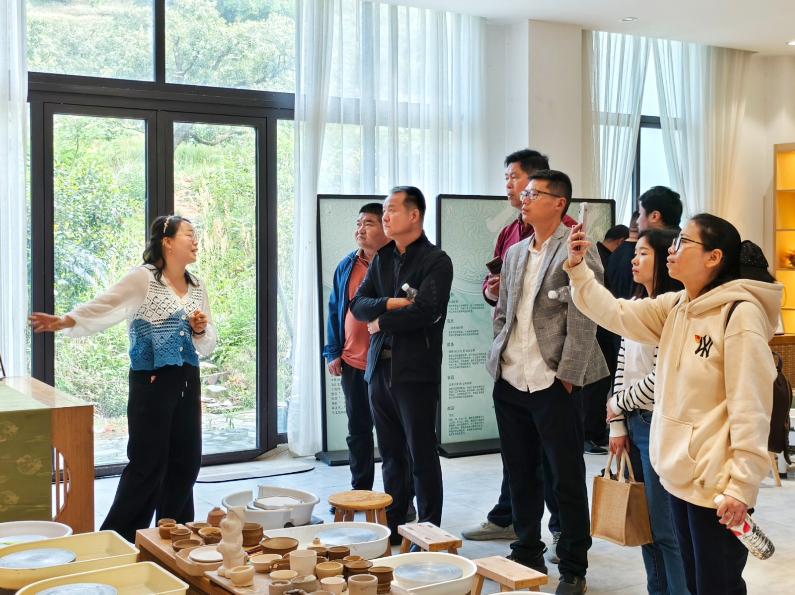 活动现场,党员们沿着环云湖红色步道,参观美丽乡村,解锁红色文化长廊、共富工坊、数字农业直播基地等点位。在“行走的党课”环节,讲解员以“一村一品”乡村振兴案例为切入点,讲述村庄通过党建联建整合资源、发展特色产业实现共同富裕的历程。互动环节创新融入“红色闯关”与“非遗手作”体验,集卡司机与企业职工党员共同完成手工茶的采摘与制作。