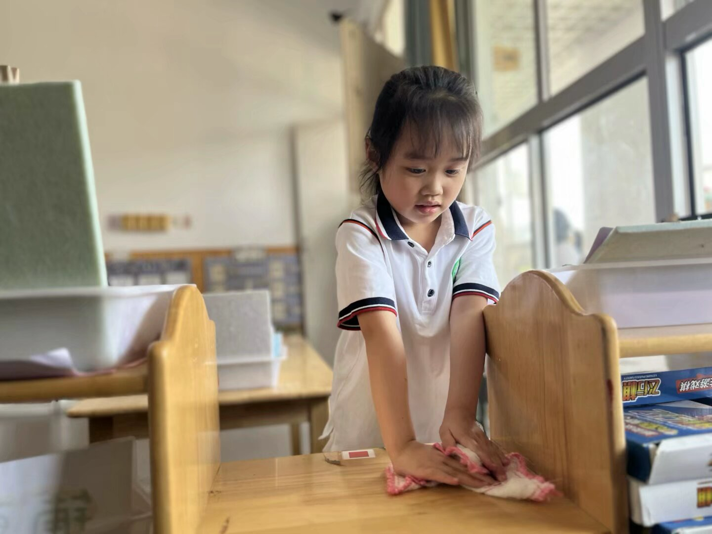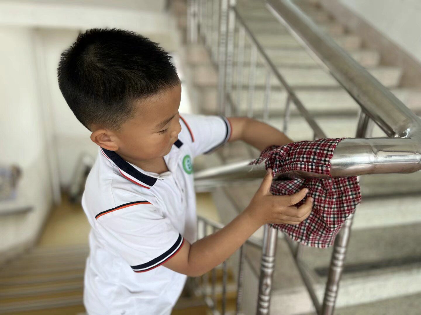活动中,幼儿们热情高涨,带着抹布、水桶、扫把等劳动工具化身为“劳动小能手”,积极投入到卫生打扫中。他们分工明确,有的擦桌椅、柜子,有的清扫地面,还有的擦楼梯等,幼儿园里处处洋溢着孩子们忙碌而欢快的身影。