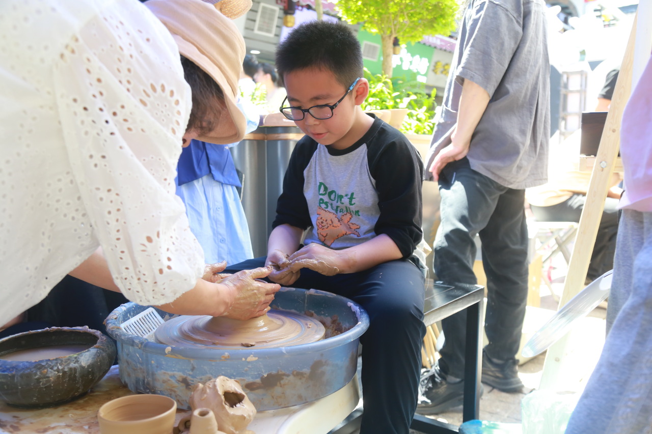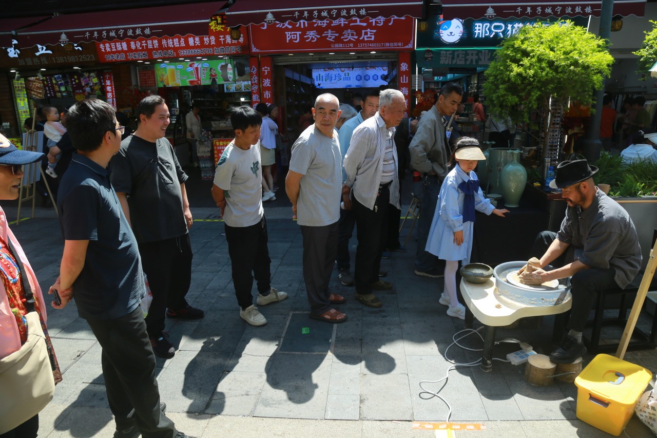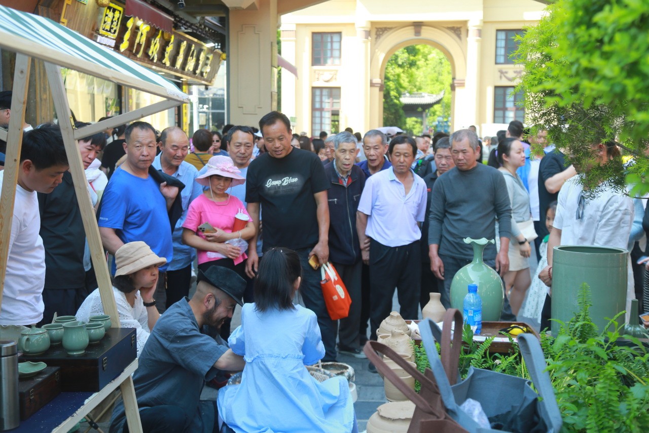 青瓷观摩品鉴区早已被层层叠叠的观众围成一道圆弧,宁波市工艺美术大师沈小波为现场市民介绍了青瓷制作的技艺及步骤。随后带领大家一步步体验青瓷从拉坯到烧制前的所有环节,让他们亲身感受到了“九秋风露越窑开,夺得千峰翠色来”的匠心之美。
