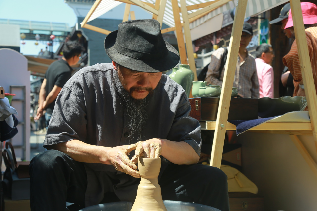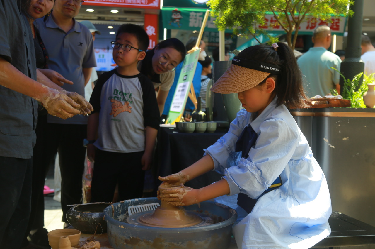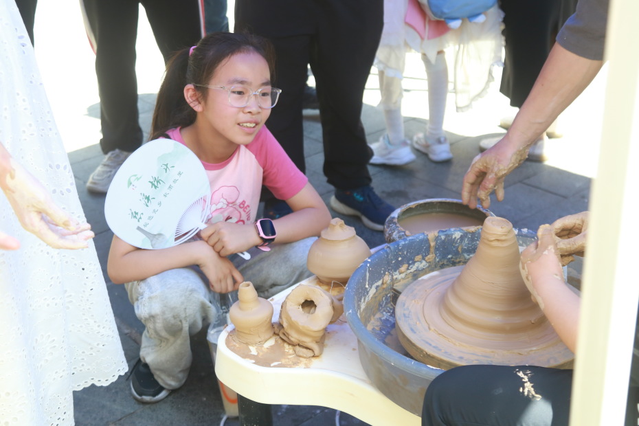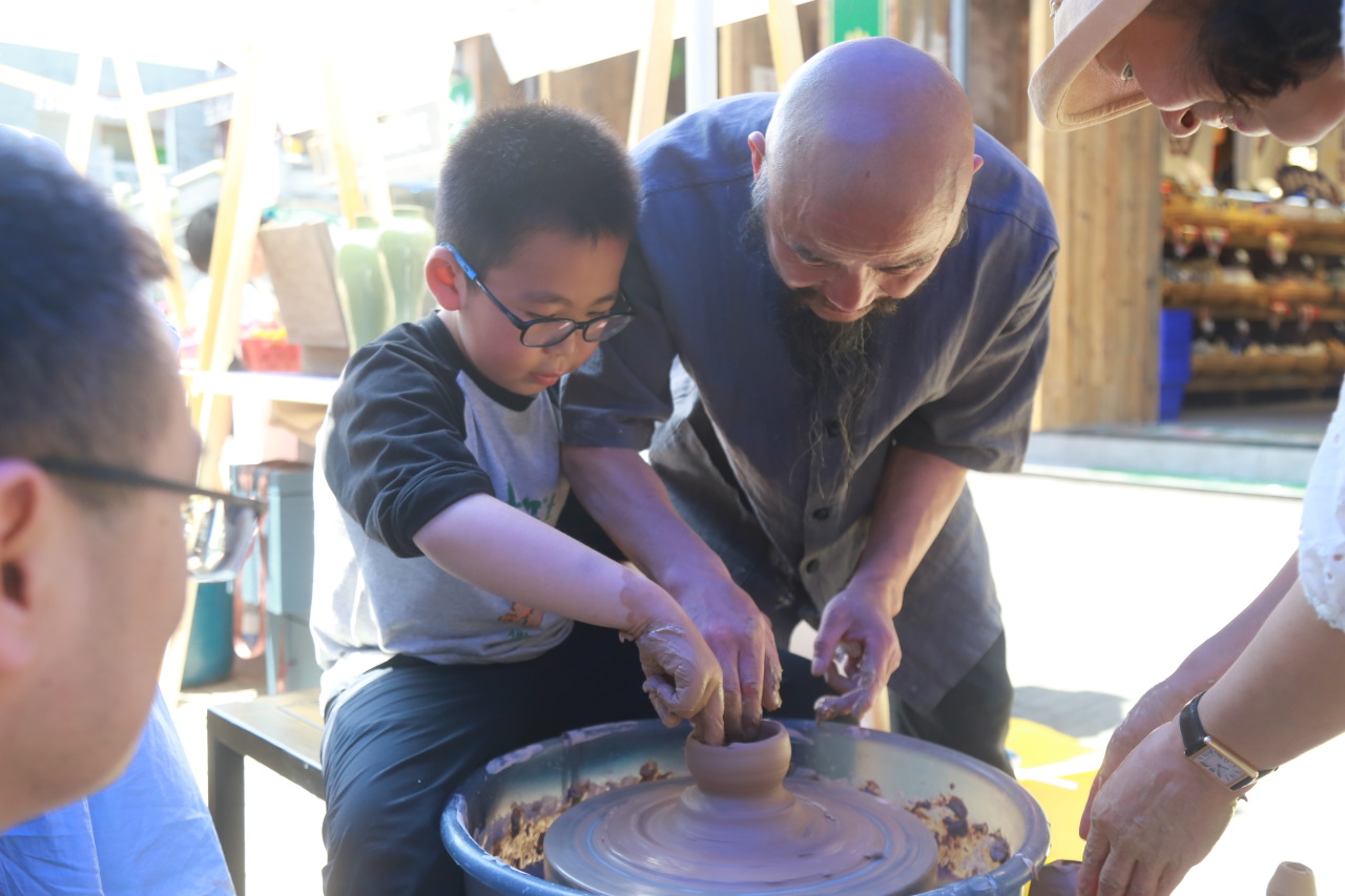 青瓷观摩品鉴区早已被层层叠叠的观众围成一道圆弧,宁波市工艺美术大师沈小波为现场市民介绍了青瓷制作的技艺及步骤。随后带领大家一步步体验青瓷从拉坯到烧制前的所有环节,让他们亲身感受到了“九秋风露越窑开,夺得千峰翠色来”的匠心之美。