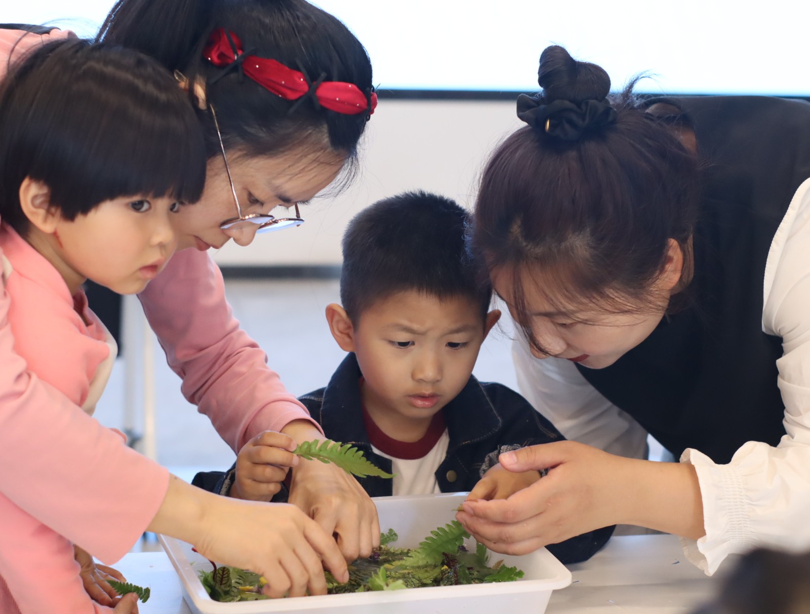 随后,孩子们在丫丫老师的指导下自由进行拓染创作。他们有的将花草的汁液浸润在白布上,有的敲打上色,有的固定书签的造型,乐在其中。“植物拓染可以让孩子们亲近自然,放松心情,同时还能培养孩子们的艺术素养和创造力。