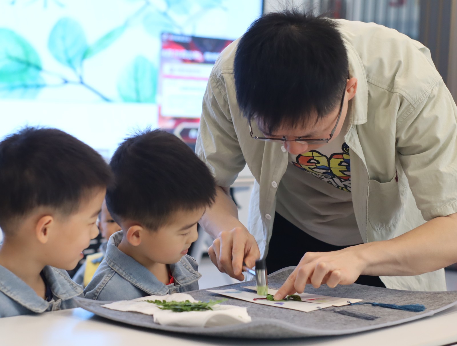 “小朋友们要认真听哦,我先给大家讲一下什么是植物拓染哦,等我讲完以后,小朋友们可以来我这里领取鸡蛋哦!”2025 年 5 月 5 日上午,在江北区甬江街道万象社区新时代文明实践站,来自万象社区的20余名小朋友在丫丫老师和社区网格员的带领下,一起走进了拓染的世界,亲手创作独一无二属于自己的花草作品,在实践中感受传统艺术的魅力,用双手留住大自然的图案和颜色。这是甬江街道万象社区依托美+儿童美育开展的特色活动“把春天敲敲留下来”立夏蛋植物拓染。