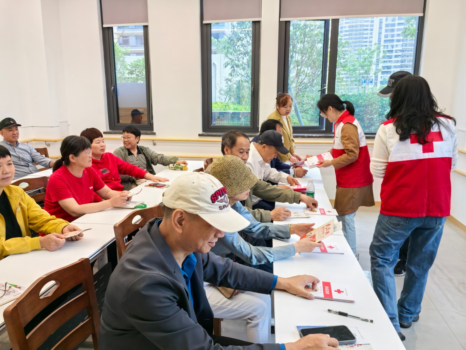 当天恰逢第78个世界红十字日,俞医生向居民介绍了该组织的起源与发展历程,重点讲述了创始人亨利·杜南的人道主义事迹。她呼吁居民关注“保护生命健康”的红十字宗旨,并现场分发了急救手册,增强社区居民的互助意识。参加活动的窦先生表示:“活动让一群老年朋友聚在一起,既学到了知识,又感受到了社会关怀,我们很乐意参加更多的教育活动。”
