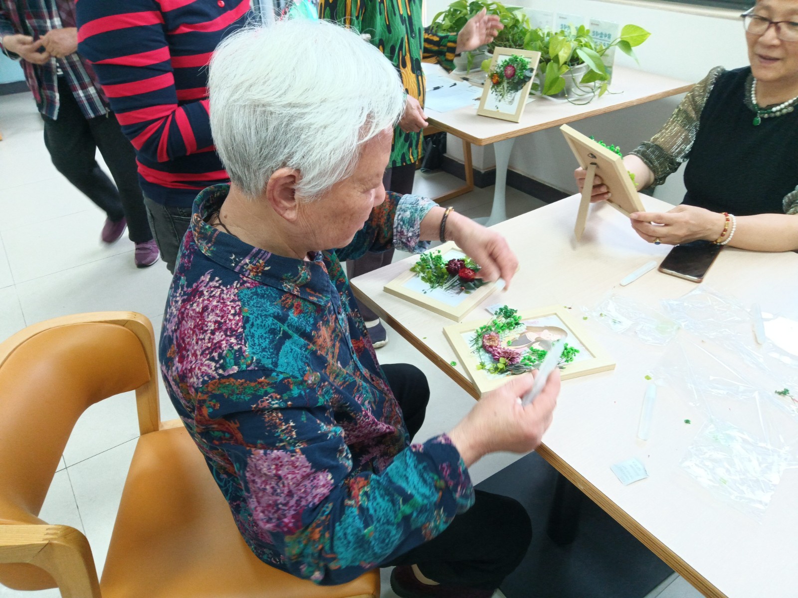 活动现场,社区志愿者提早准备了各色的永生花花材、相框、相纸、贺卡等材料。先由专业手工老师为居民们指导干花如何配比,然后再教授大家如何装饰到相框上。居民们不仅将干花装饰到相框上,还将心中的爱意定格于相框中。
