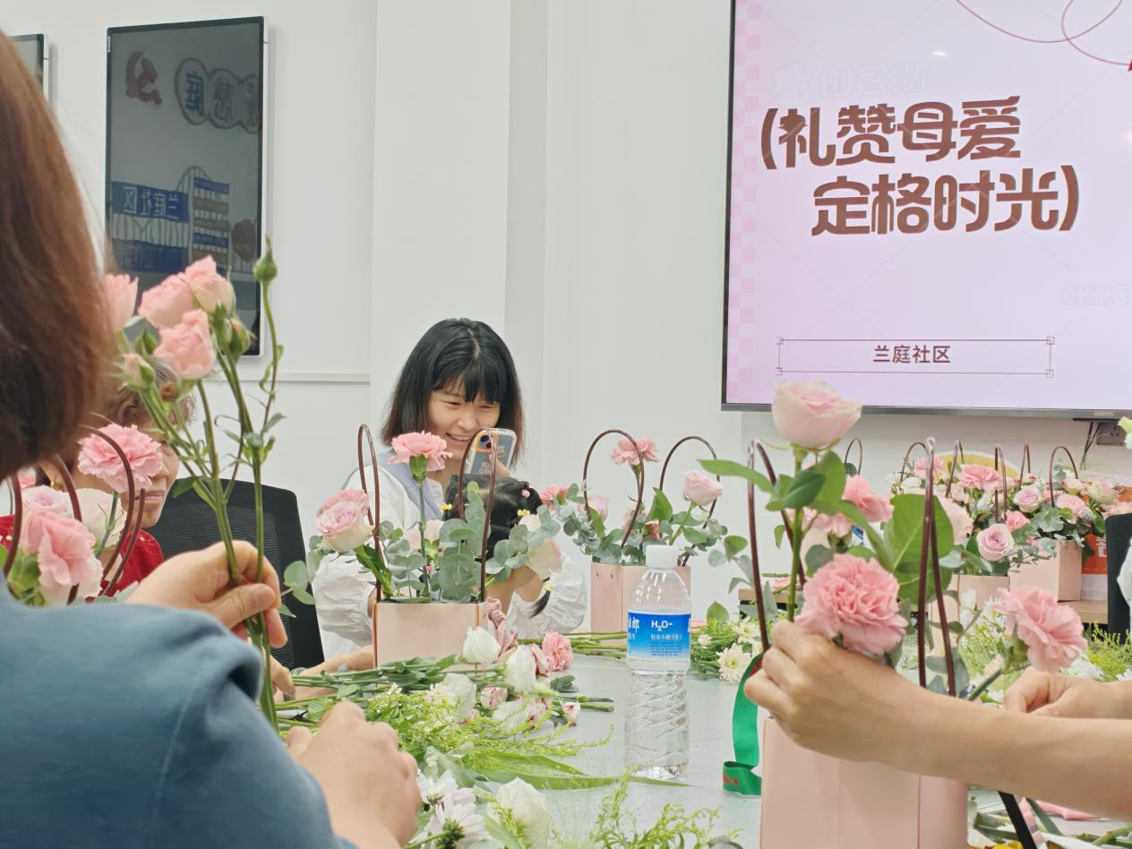 为迎接母亲节的到来,弘扬尊重母亲、感恩母爱的传统美德,5 11 日上午 9 点,由总工会主办的 “礼赞母爱定格时光” 插花活动在兰庭社区温馨举行。此次活动吸引了 20 位兰庭社区居民参与,大家在花香中共同度过了一段美好而温馨的时光。