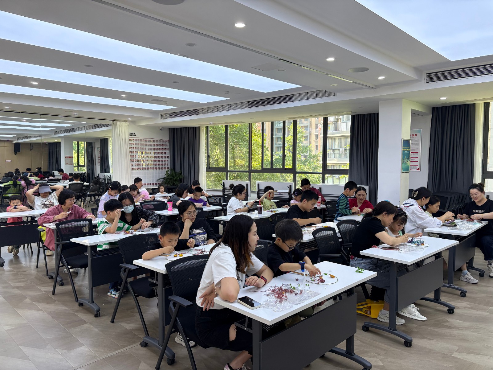 第二份礼物,是孩子们现场动手制作美丽的干花团扇送给美丽的母亲。孩子们的小手在五彩斑斓的团扇中穿梭,认真挑选自己心仪的干花材料。有的孩子精心拼凑出花朵形状,希望象征母亲如花的美丽;有的则用干花摆出爱心,传递对母亲深深的爱意。一部分家长也积极参与,协助自己的孩子完成这个作品,亲子间默契十足。