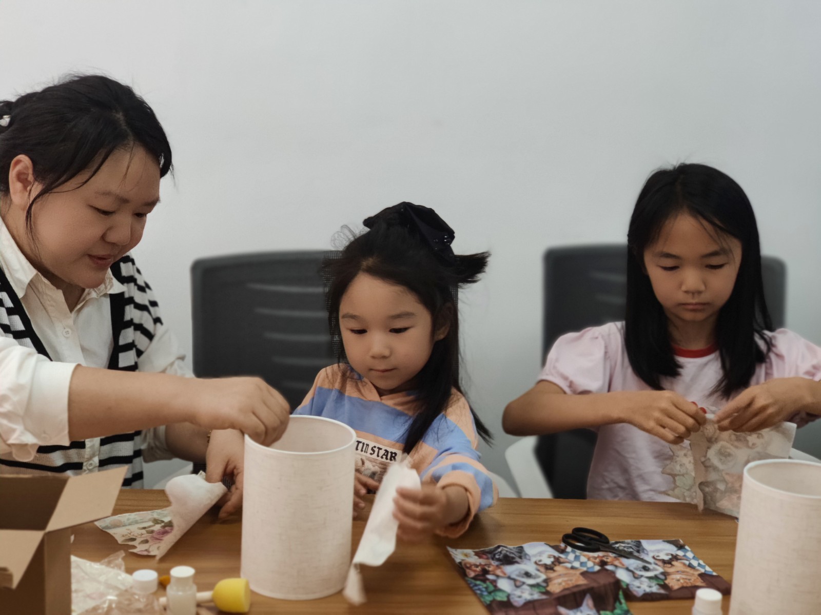 活动伊始,社区妇联工作人员向大家细致讲解蝶骨巴特艺术灯的制作技巧,从图案选择、布料裁剪到粘贴固定,每一步都耐心示范。孩子们睁大好奇的眼睛,紧紧盯着老师的动作,家长们则认真聆听,不时与孩子交流想法。