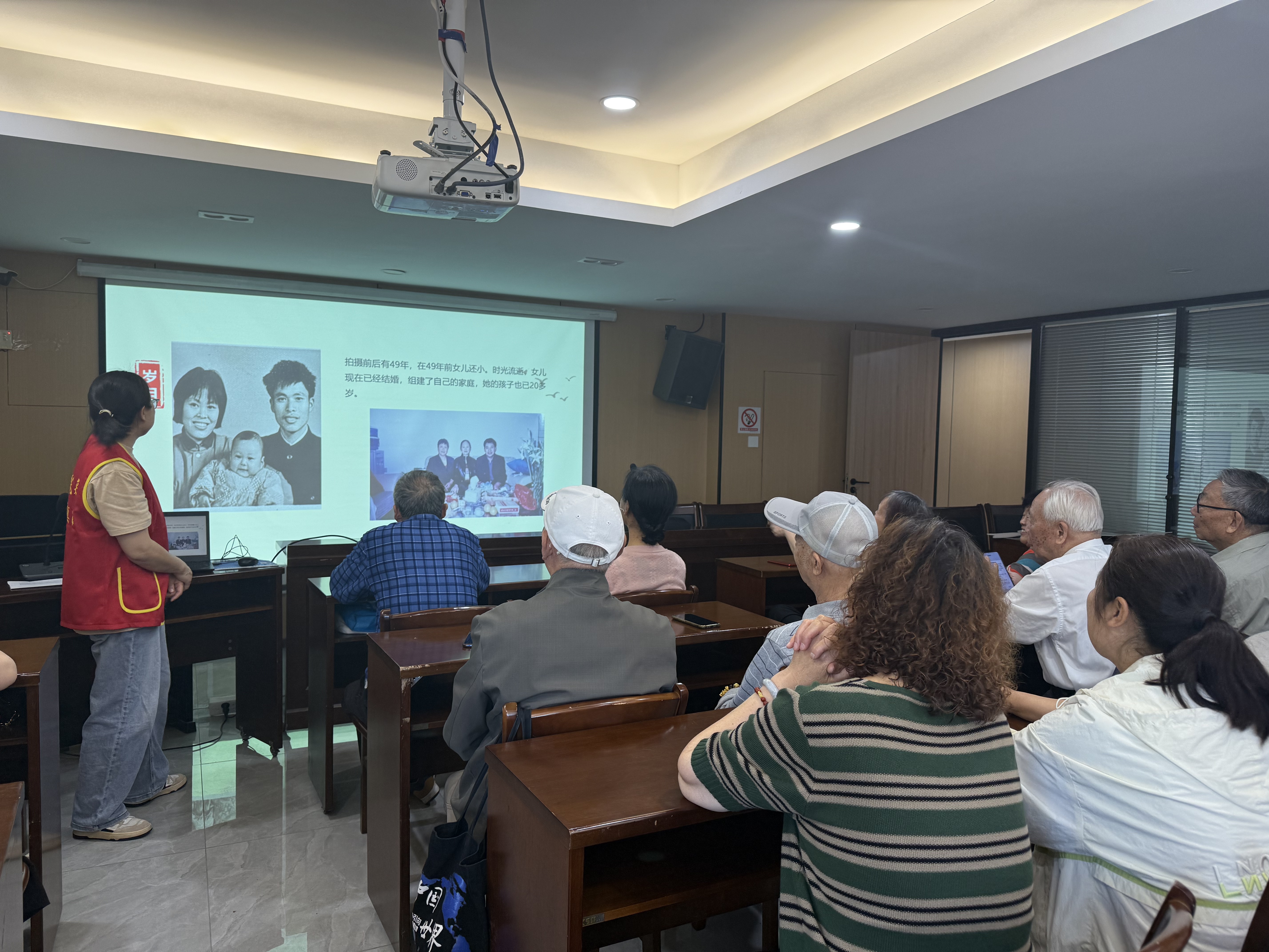 515,爱意满盈,在国际家庭日的温馨氛围中,由中街社区妇联策划的“时光映爱·感恩传承:一封家庭感恩信”主题活动,在中街社区党群服务中心圆满举办。活动前期,中街社区面向居民征集了多组家庭的老照片与近期合影。泛黄的相纸中,有父亲年轻时背着女儿放风筝的身影,有祖母抱着襁褓中的孙子在弄堂乘凉的画面,也有四世同堂的全家福。当这些影像与如今子女搀扶父母散步、孙辈为祖辈捶背的新照并列展示时,现场的居民充满了感慨。
