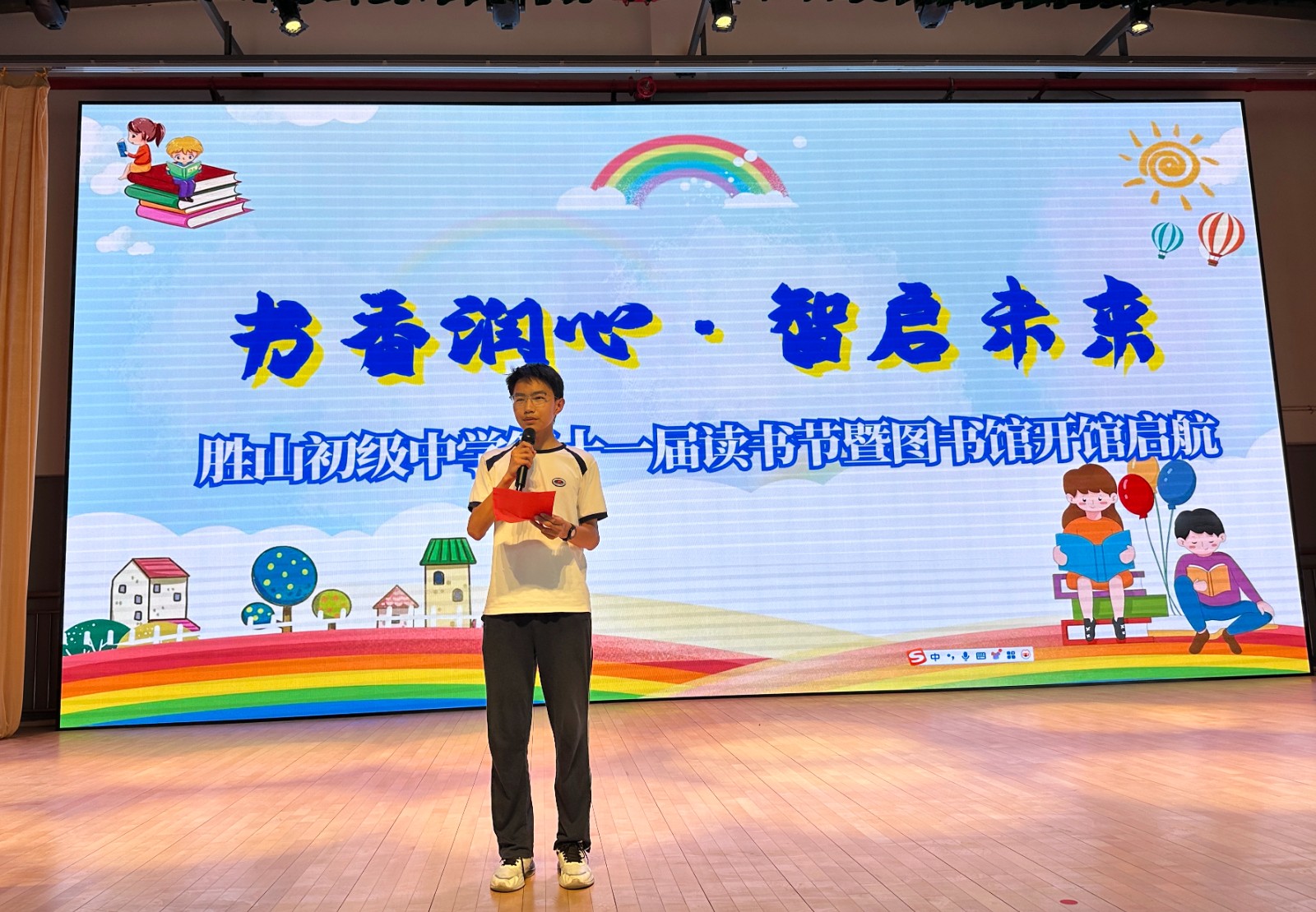 519日,胜山初级中学第十一届校园读书节与新建图书馆开馆仪式同步启动。林校长在致辞中寄语学子"以书为舟驶向星辰大海",号召师生通过阅读搭建通往未来的桥梁。