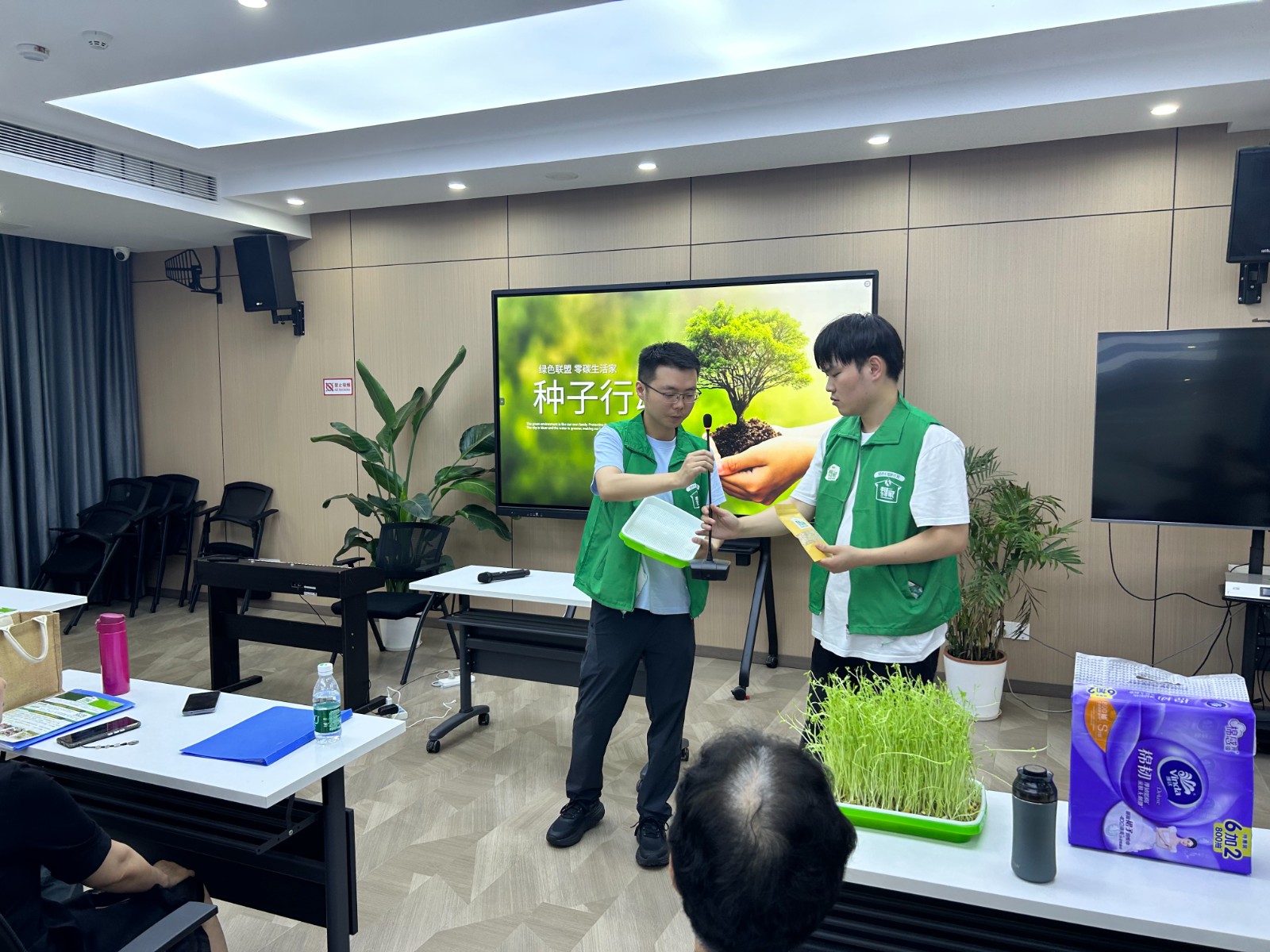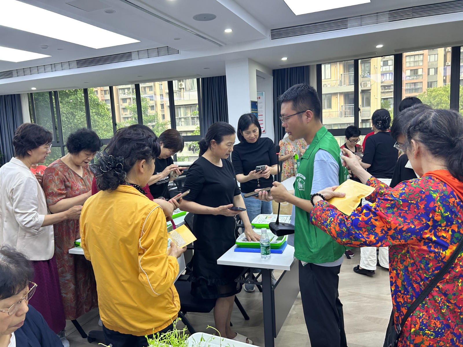 此次活动别开生面,以芽苗菜种植为切入点,采用无土栽培、无需施肥的新型绿色种植方式,让老人们在轻松愉快的氛围中感受种植的乐趣与科技的魅力。不用土、不施肥,轻轻松松就能收获绿色蔬菜,低碳生活也可以这么好玩!讲解老师幽默风趣的开场白,引得现场掌声与笑声不断,极大地调动了学员们的参与热情。图片2.JPG