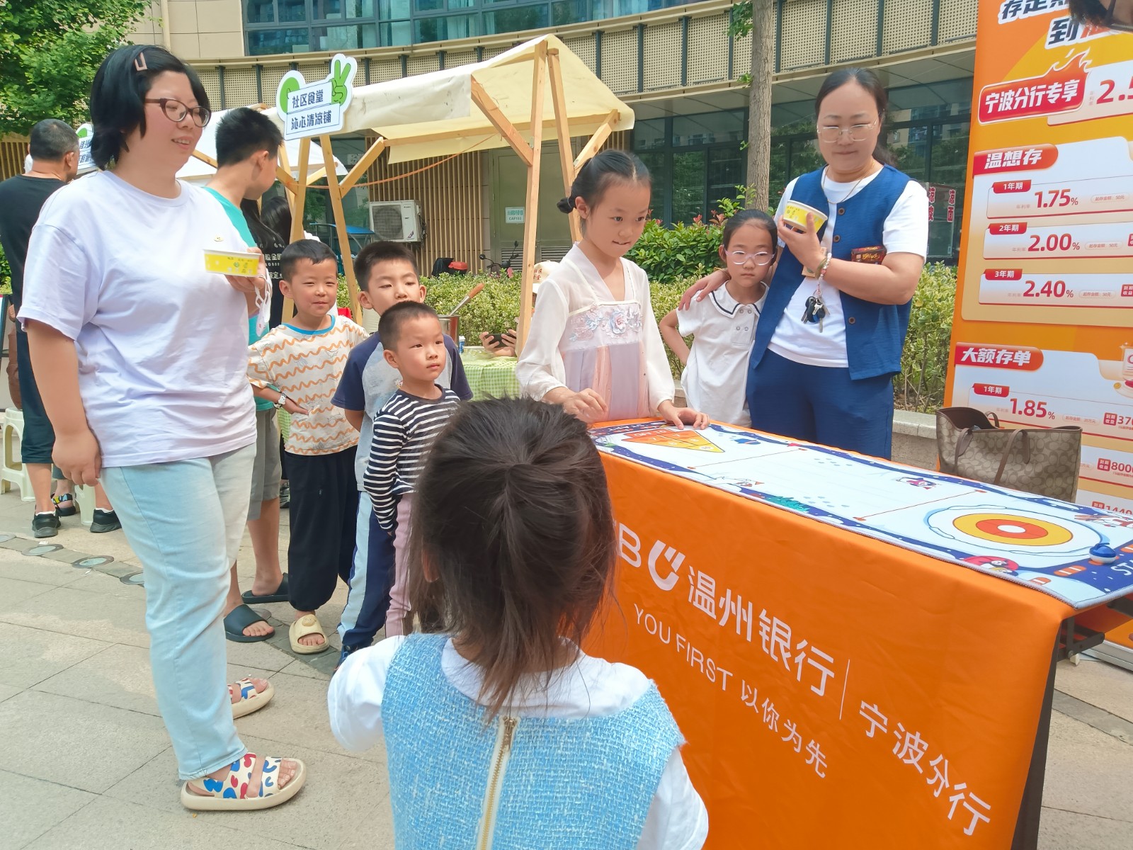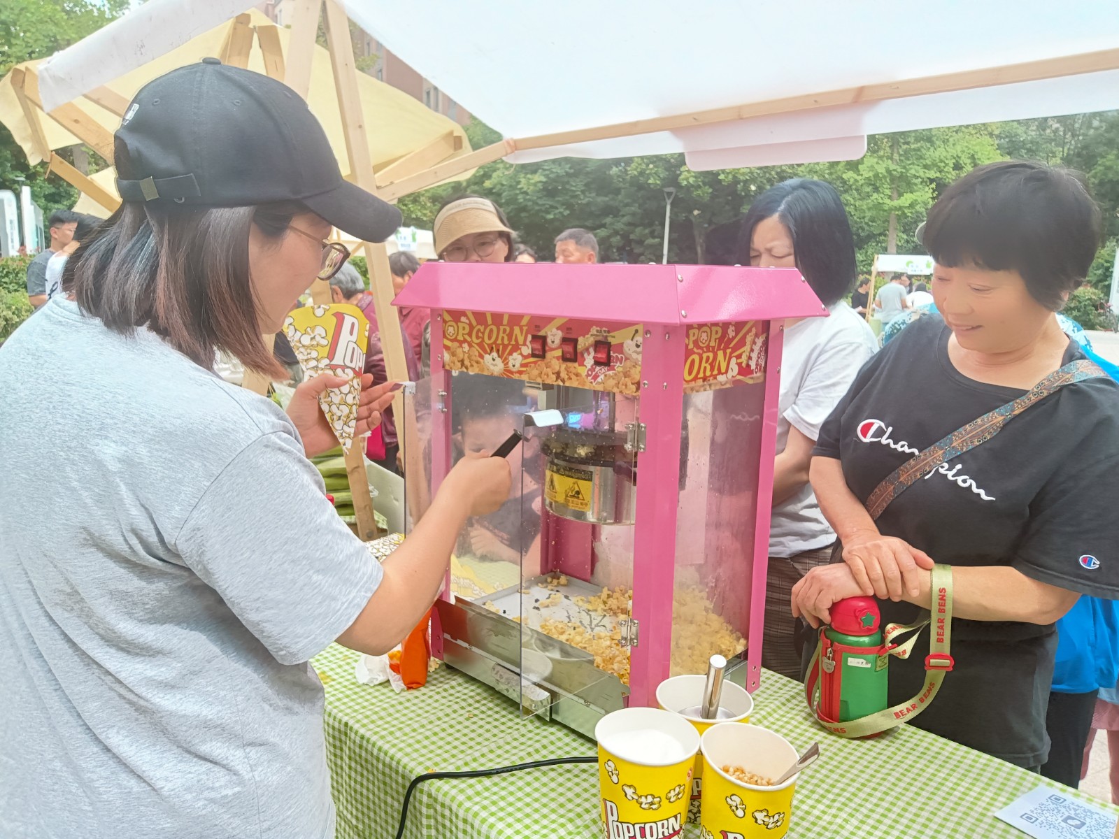 此次市集在天沁家园网格内举行。本次市集设置特色美食、游戏互动、文创展销三大板块,现场人头攒动。传统节令美食粽子、特色农副产品等整齐陈列,尽显自然本味,琳琅满目的文创商品更是吸引众人目光。人气爆棚的游戏区里,孩子们滚动铁环、钓起“粽子”、桌面冰壶等趣味活动,欢声笑语不断,在互动中感受民俗魅力,邻里情谊升温。未来社区贴心的“能量加油站”提供免费绿豆汤给居民消暑,香甜的爆米花讨小朋友欢心,空气中弥漫着幸福与欢乐的味道。