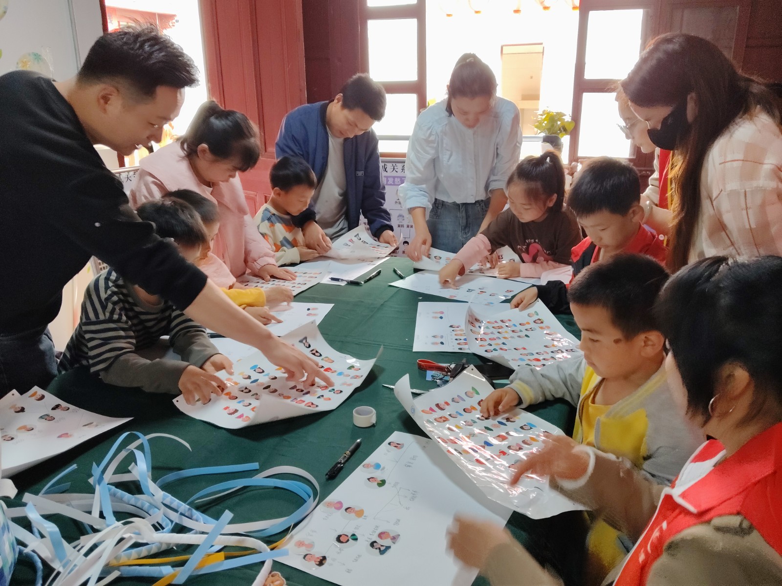 三代同堂家庭协作课堂共分科学育儿讲座、共绘家庭树、多巴胺菜篮子制作等环节。科学育儿讲座围绕家庭关系、家庭健康等话题开展,为家长提供实用的家庭指导和建议。通过祖辈口述家族历史、交流家族故事,父母和孩子共同参与的方式,制作简易版家谱,让孩子们了解血缘、亲人,传承优良家风家训,扎根过去,探索未来。多巴胺菜篮子更是完美呈现了三代人不同的文化认知差异:祖辈的菜篮子承载着"三年自然灾害"时期的集体记忆,有着饥饿烙印;父辈们经历了菜篮子到环保袋的改革,见证了生活质量的提升;孙辈们则更重视视觉上的美观和心情愉悦。祖辈教授、父母编织、幼儿贴美,每一步都充满色彩,一个菜篮子,更是一份爱!