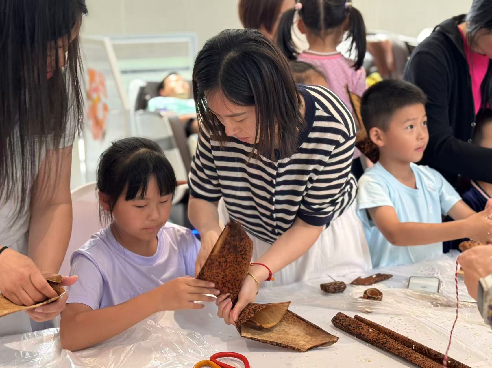 现场,翠绿的粽叶、雪白的糯米、饱满的红豆、鲜香的五花肉等食材整齐摆放,仿佛在等待着被赋予新的生命。随着工作人员一声令下,各组家庭迅速行动起来,家长们熟练地拿起粽叶,折成漏斗状,填入糯米和馅料,再用绳子紧紧捆扎,动作一气呵成。孩子们在家长的指导下,小心翼翼地尝试着包粽子,虽然手法略显生疏,但那认真的模样让人忍俊不禁。整个活动现场欢笑声不断,大家一边包粽子,一边交流着包粽的心得和技巧,邻里之间的情谊在这一来一往中不断升温。