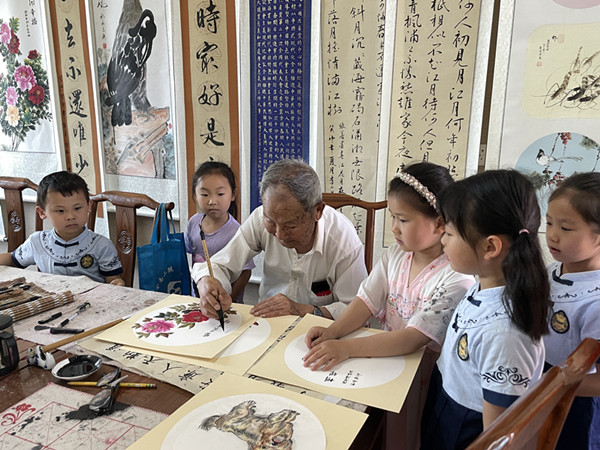 北仑霞浦社区教育中心陈华浦分中心:银龄童心融墨趣 丹青共绘代际情