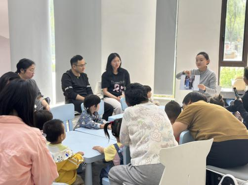 紧接着的拼图环节,孩子们把不同形状的积木和色彩相同的花放置在一起。在此过程中,老师耐心地引导家长仔细观察孩子的操作过程,并详细讲解了其中所蕴含的早教知识,让家长们清晰地了解到如何通过日常游戏来培养孩子的观察力、想象力和空间思维能力。