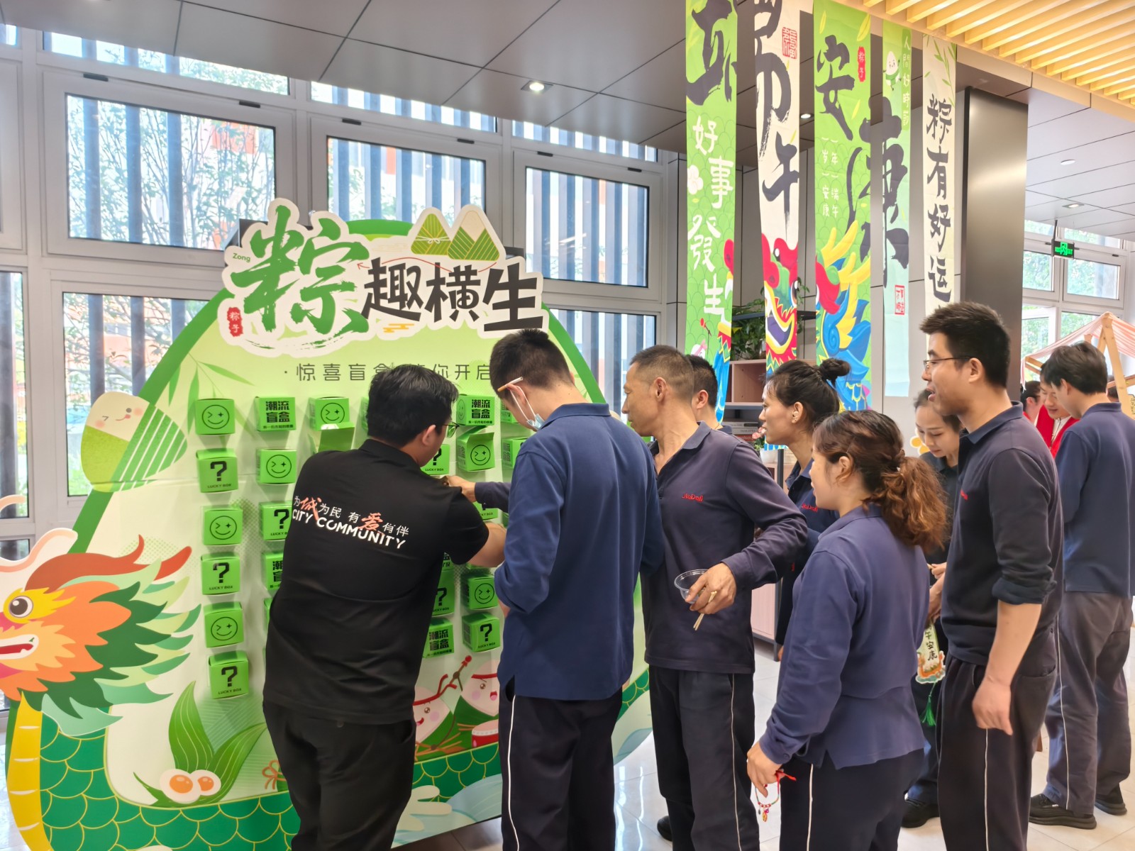 此外,“趣味问答抽盲盒” 环节也备受青睐。主持人提出关于端午节习俗、文化知识等问题,大家踊跃抢答。答对者可抽取盲盒,盲盒内有各类小礼品,现场气氛热烈而欢快。
