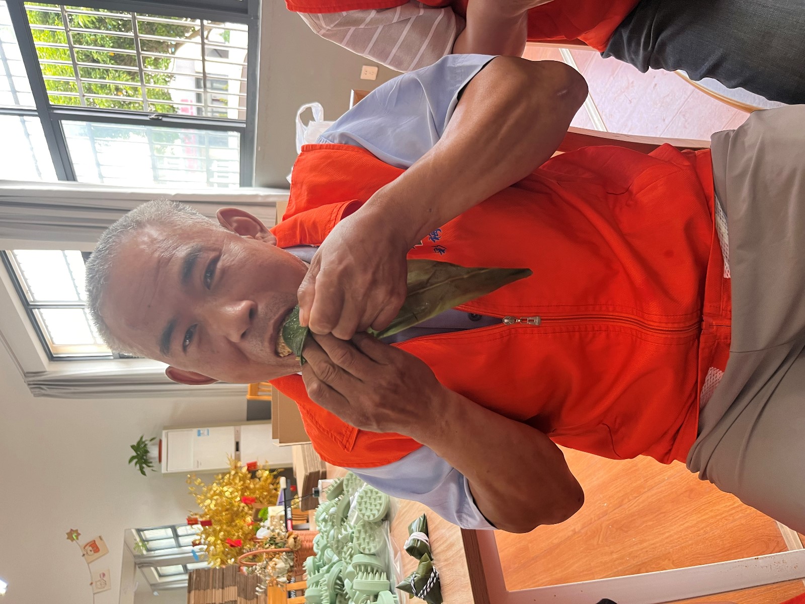 经过几个小时的蒸煮和焖烧,热气腾腾的绿粽新鲜“出炉”,清爽甘醇的粽子香气飘满整个实训室。“包完粽子吃粽子,自己动手包的粽子,味道就是不一样,真是吃在嘴里美在心里。端午节就应该聚在一起包包粽子,感受粽子的浓香味”彩梅之家负责人说道。