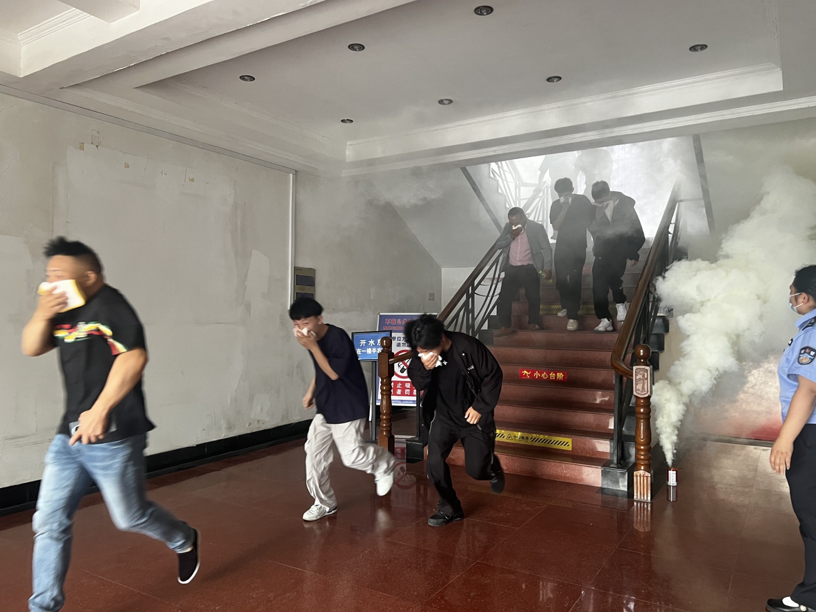 上午9:05,总指挥沃其洪校长宣布演练正式开始,急促的警报声响起,学校各楼层负责人迅速指挥学员们撤离,学员们在负责人带领下快速、有序地离开,大多数学员都能下意识地弯下腰,用手或衣物捂住口鼻,跟随队伍迅速转移到安全地带。整个过程迅速、有序且配合默契。