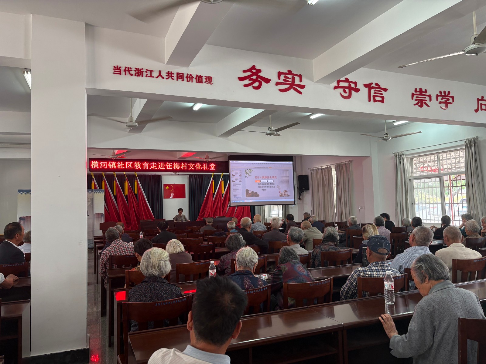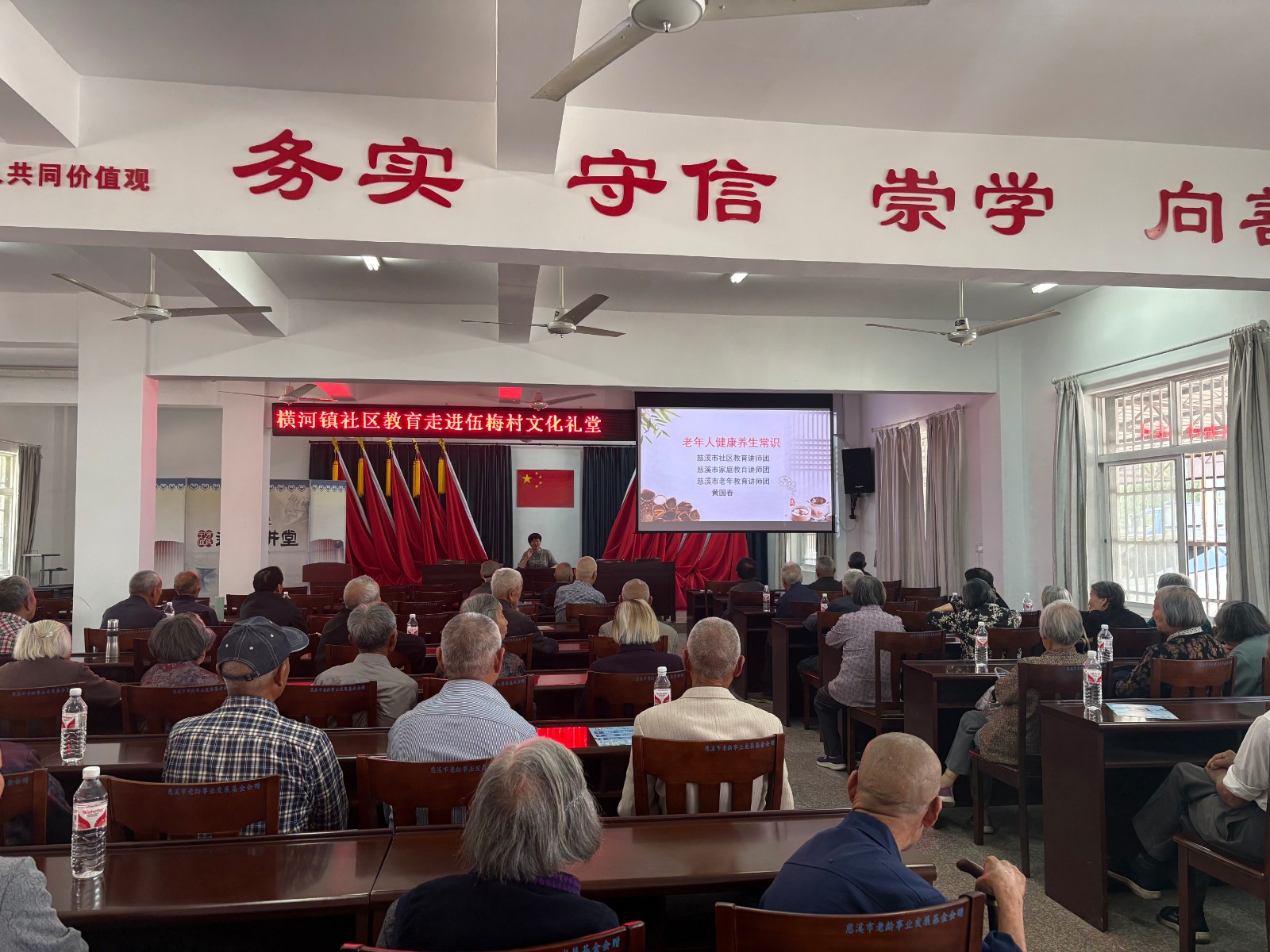 为积极宣传普及老年健康科学知识和老年健康相关政策,引导老年人践行健康老龄化和健康生活方式,530日上午八点,横河镇社区教育中心在伍梅村开展“改善老年营养、促进老年健康”为主题的中老年养生保健健康知识讲座。