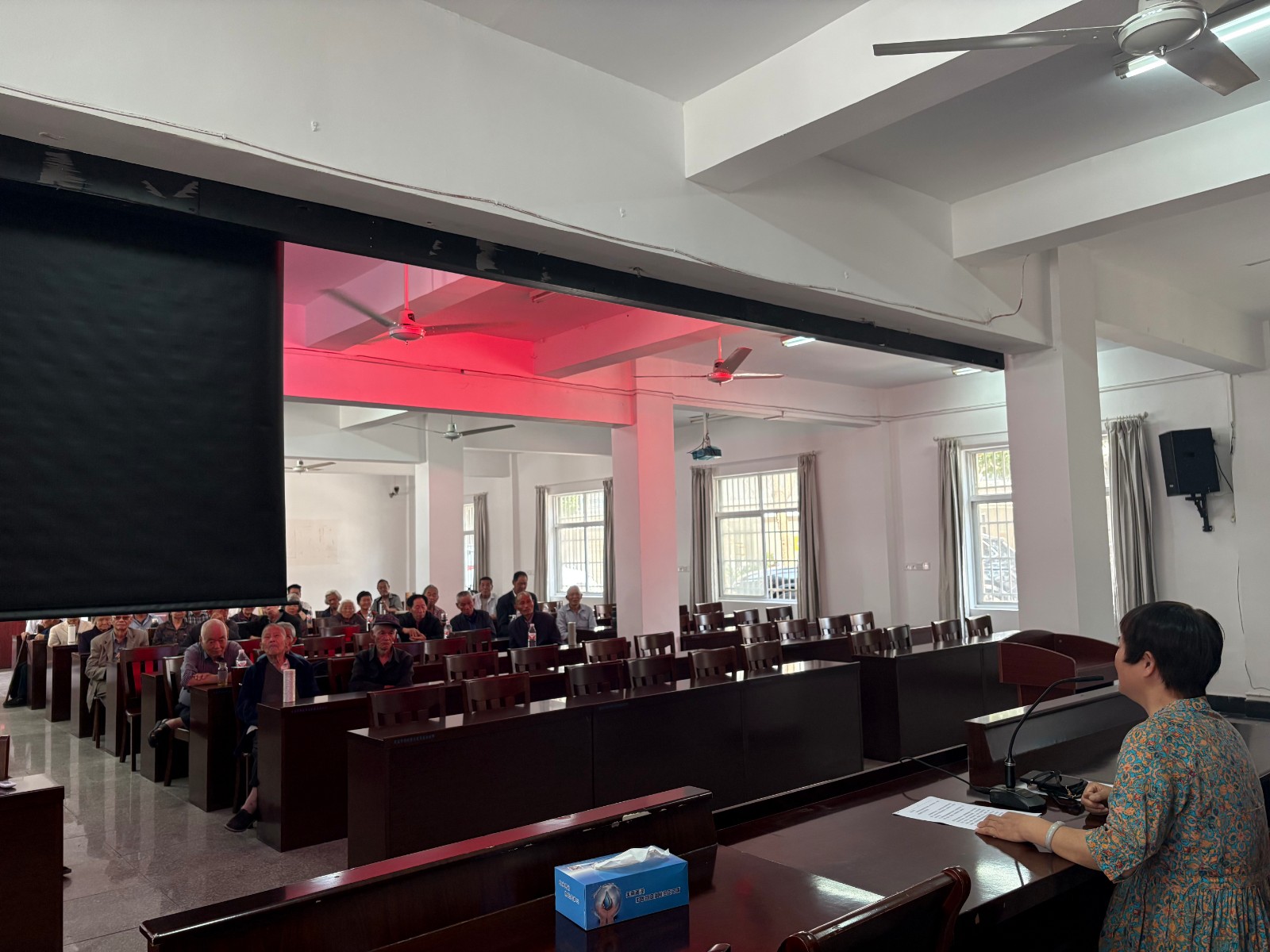市社区教育讲师团黄国春老师通过ppt,罗列出老年人的生理、心理特点和保健养生知识,并且据实列讲解一一讲解,还播放老年健康教育科普视频,宣传营养膳食、运动健身、心理健康、口腔健康、疾病预防等健康科学知识。在场的中老年人根据自身情况提出了一系列健康常识相关问题,讲座医师一一作了详尽的解答,针对村民不会说普通话,授课医师还用方言进行解答,让现场观众倍感亲切,加深了观众对健康知识的理解度。