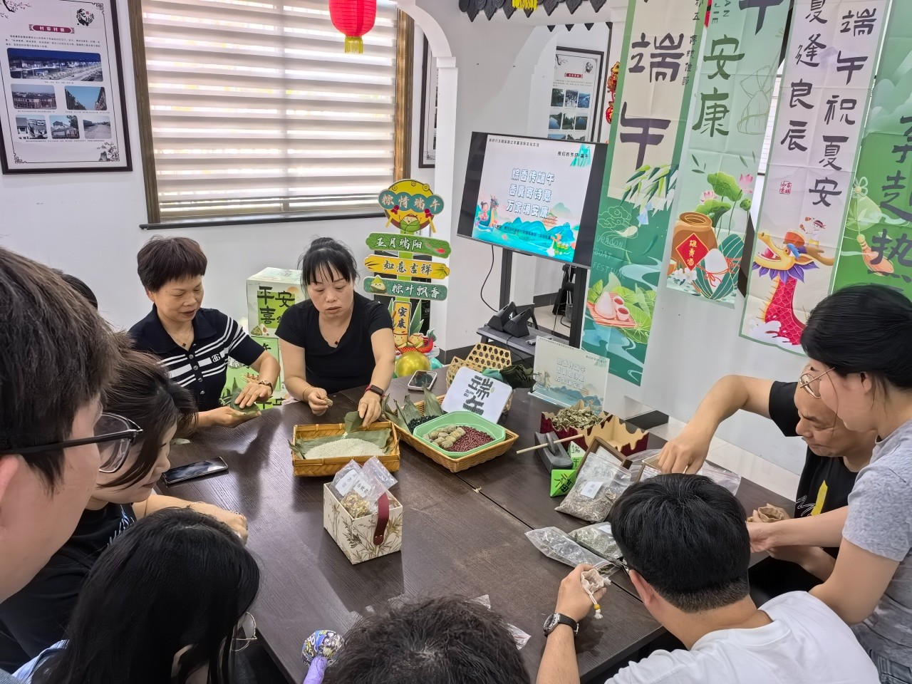 潭河沿村举办“粽香传端午 香囊寄诗意 万家诵安康”活动,邀请村民共赏端午诗词。现场还设有"巧手制香囊"体验区,备有艾草、彩布等材料,邀请大家一起制作祈福香囊。