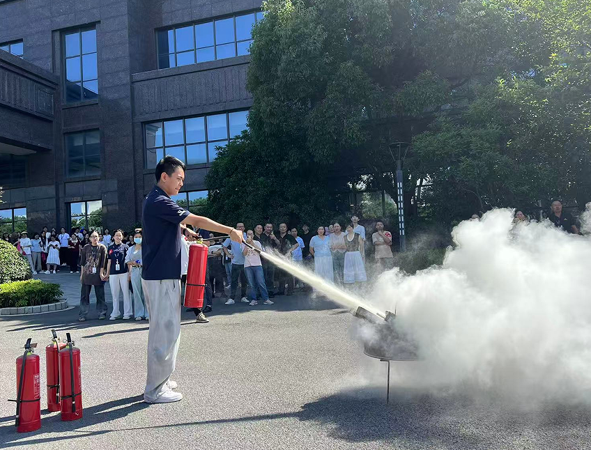 随后,消防演练正式启动。在物业安保人员的引导下,参演人员按照应急预案,迅速、有序地从模拟火灾现场撤离至安全集结点,整个过程紧张有序,用时420秒完成全员疏散。演练结束后,现场开展消防器材实操教学,职工代表依次尝试使用灭火器扑灭明火,掌握“一提二拔三握四压”的正确操作方法。