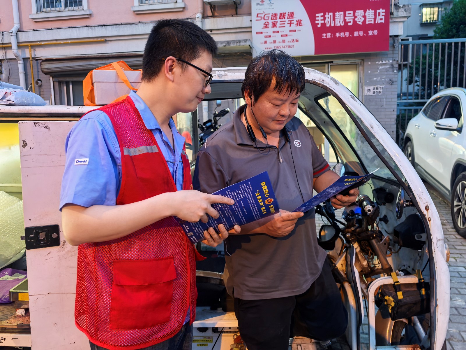 针对不同职业特性,青墩社区网格员精心准备了不同侧重的防范内容。对于店铺经营者,重点剖析了冒充公检法要求转账、假冒客户大额订单诈骗、虚假供货商收款诈骗等典型案例,警示他们切勿轻信陌生来电转账指令;面向奔忙于街巷的快递员和外卖员,则深入揭露了快递丢失理赔平台异常扣款刷单返利等常见骗局,提醒他们务必核实官方信息,不点击不明链接,守住辛苦血汗钱。宣传人员还详细解读了诈骗分子惯用的话术套路和心理操控手段,让参与者深刻理解诈骗背后的运作逻辑,增强主动防御意识。